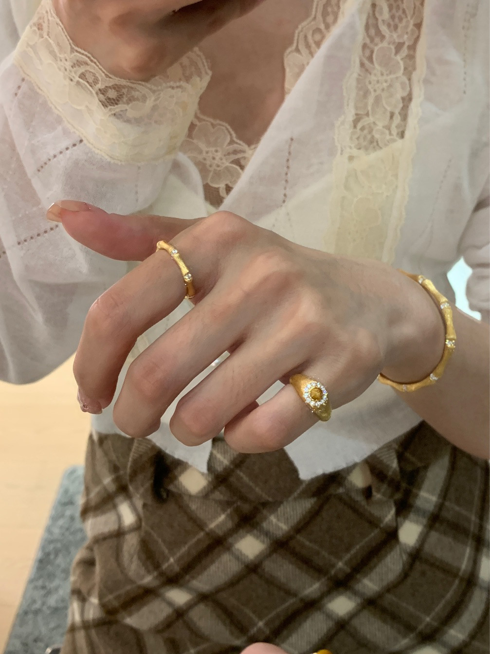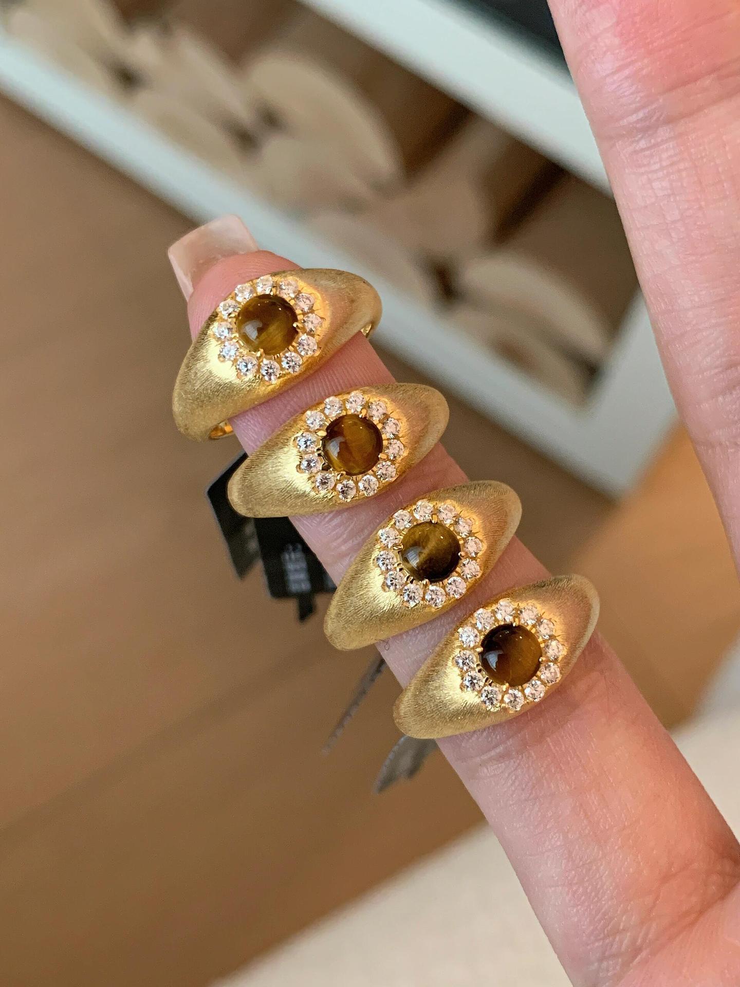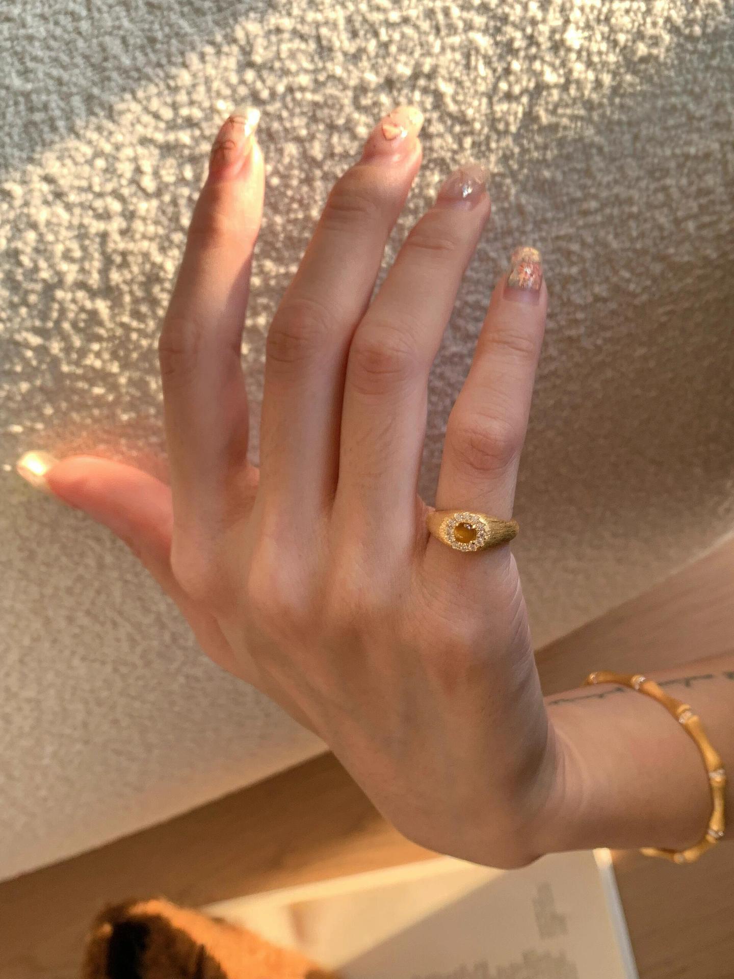 小红书同款虎眼石中古风拉丝工艺尾戒戒指女摩卡美拉德指环复古
