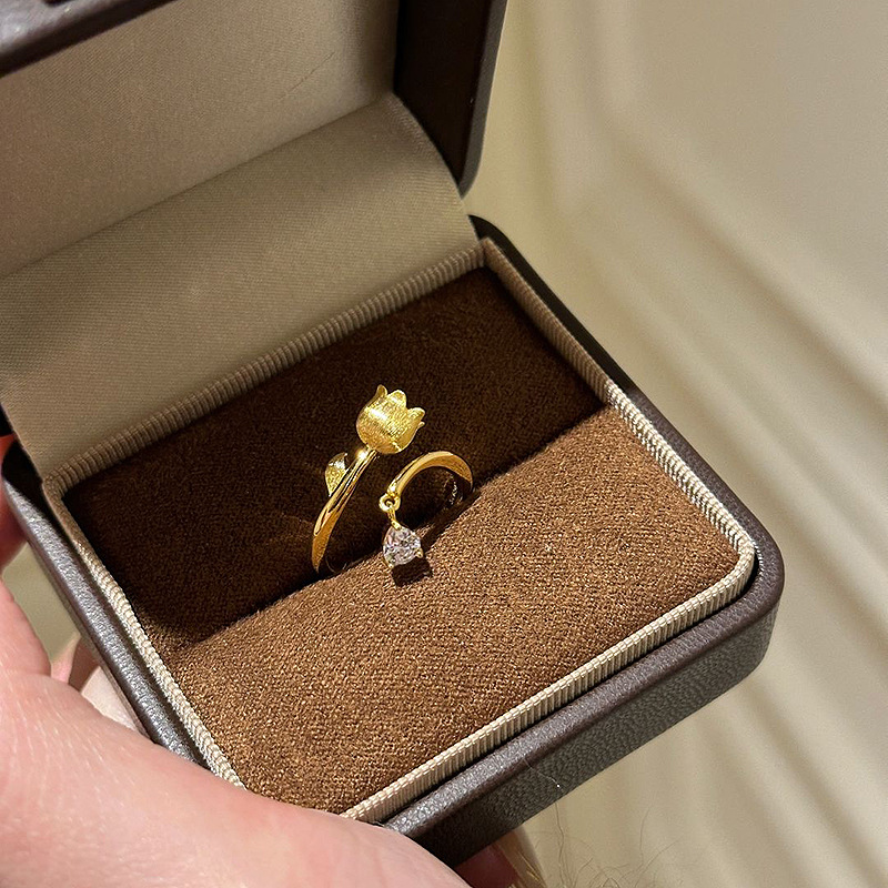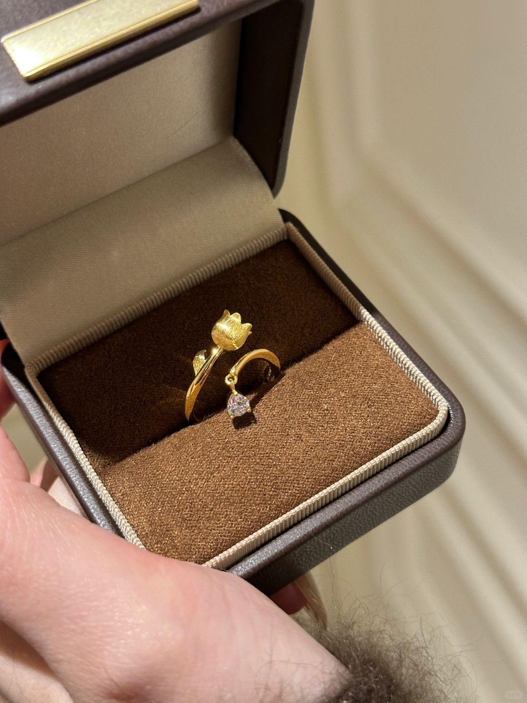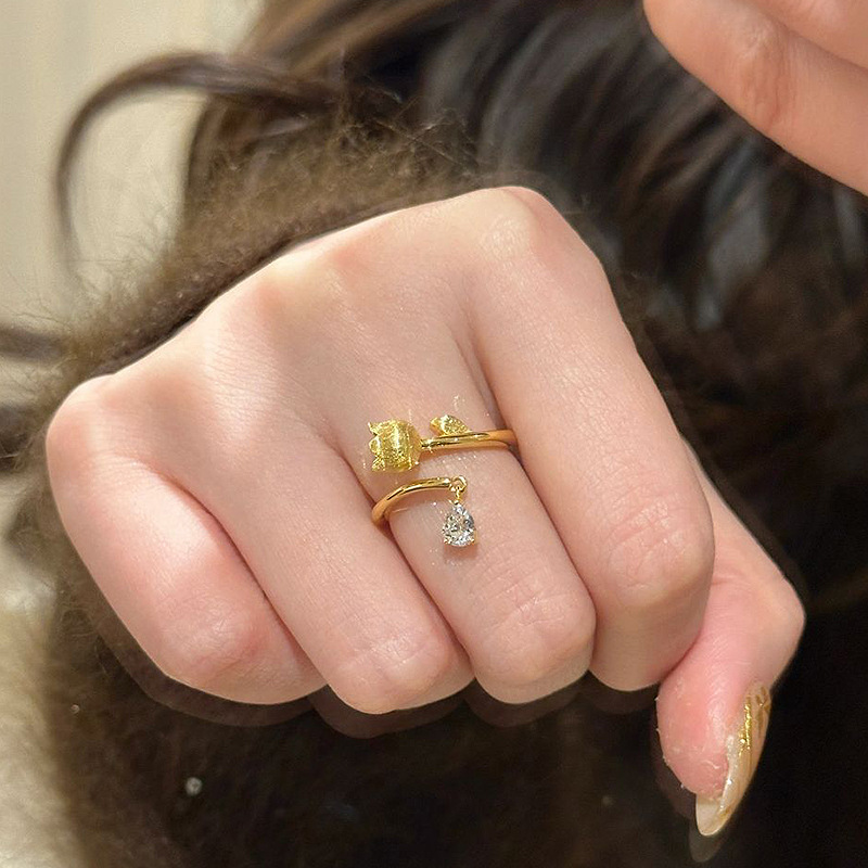 小红书爆款古法沙金拉丝铃兰花戒指流苏水滴钻开口指环女