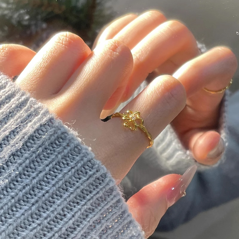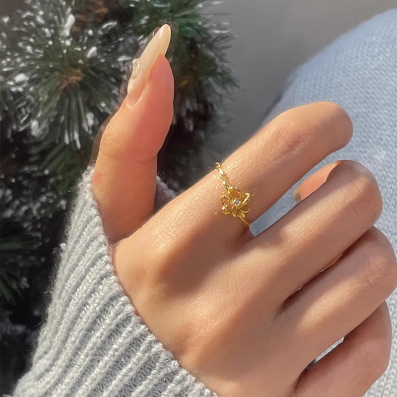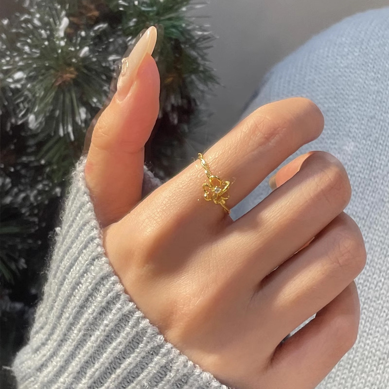 小红书爆款镂空花环戒指2025新款时尚轻奢小金花点钻指环
