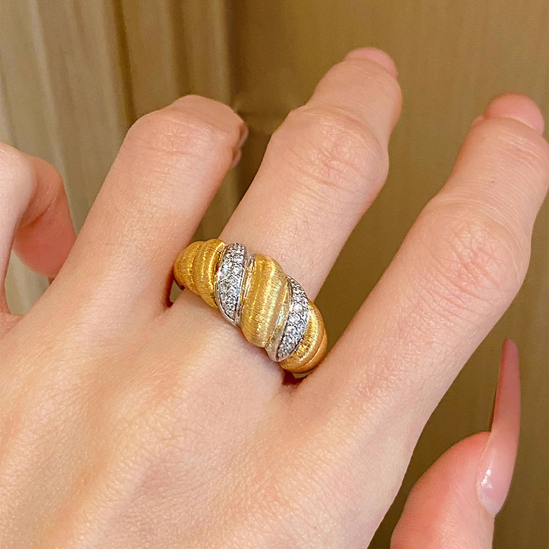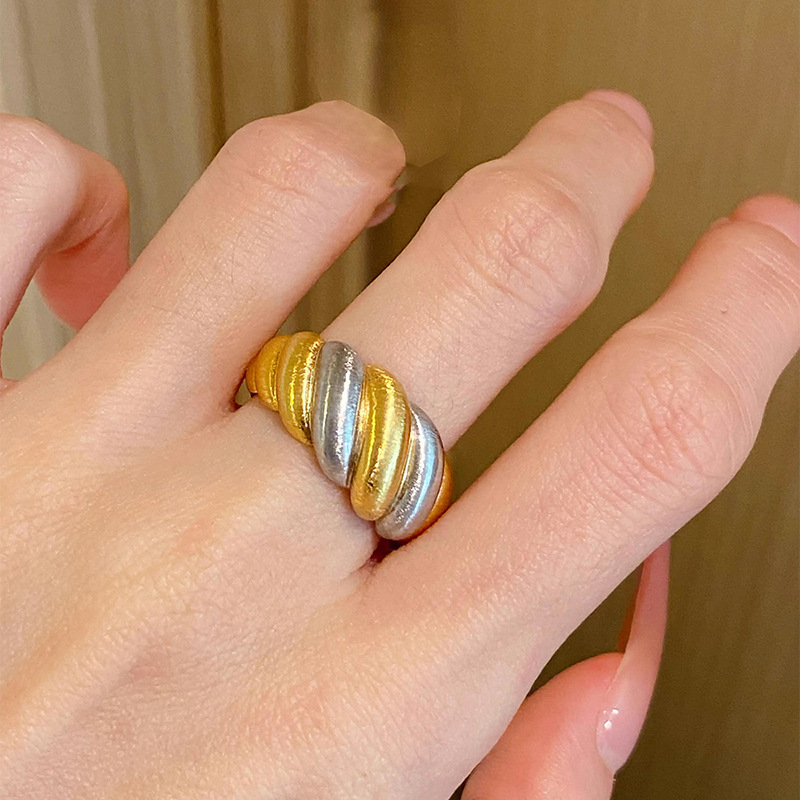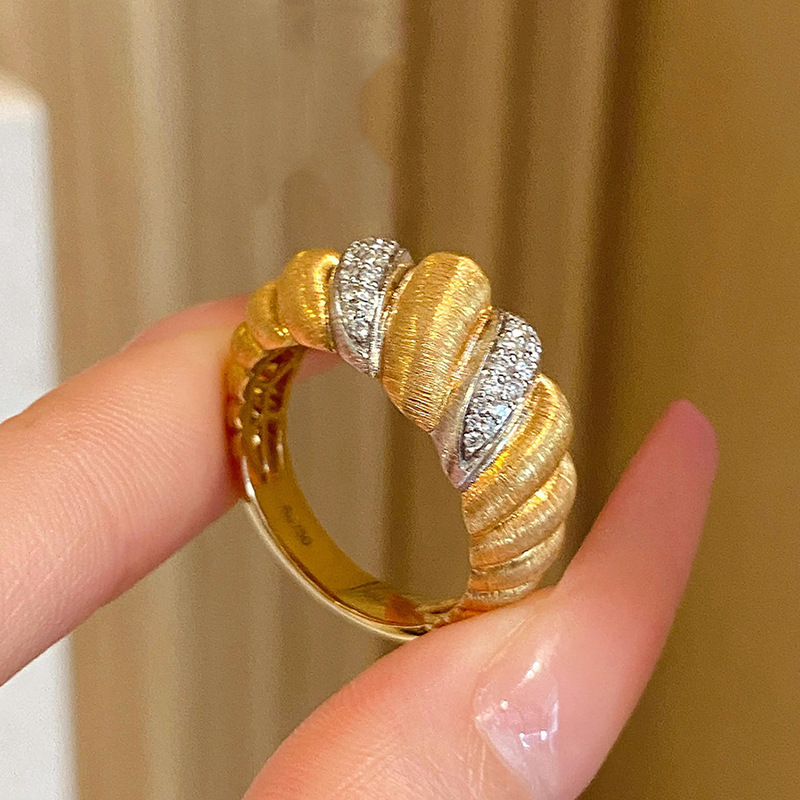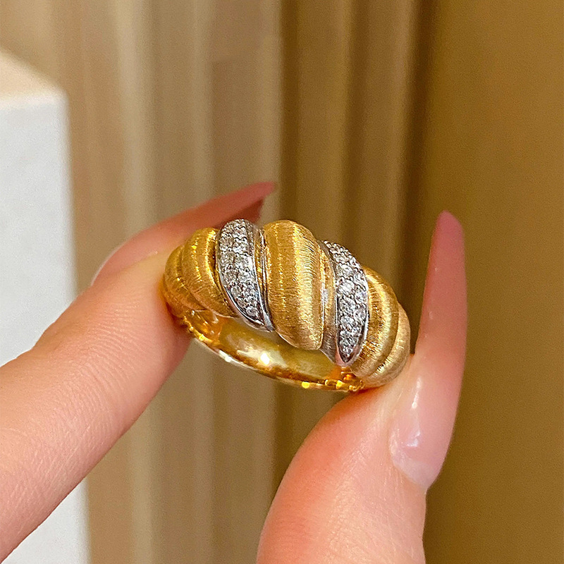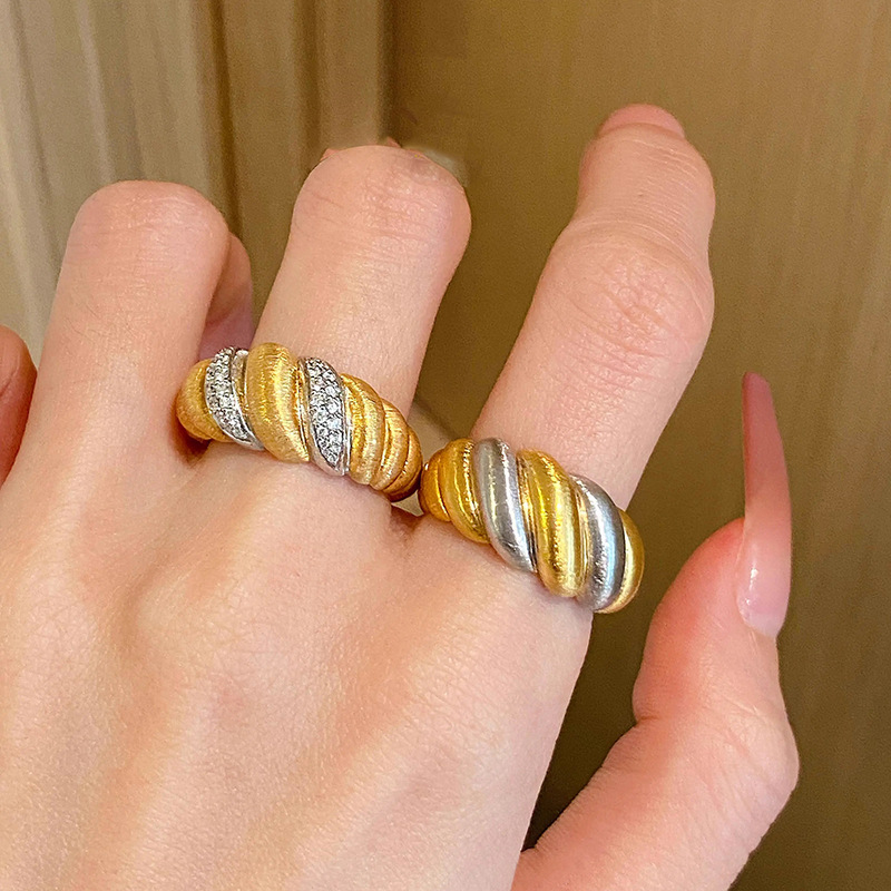 小红书爆款重工古法金色拉丝点钻超闪戒指南瓜麻花银色素圈指环女