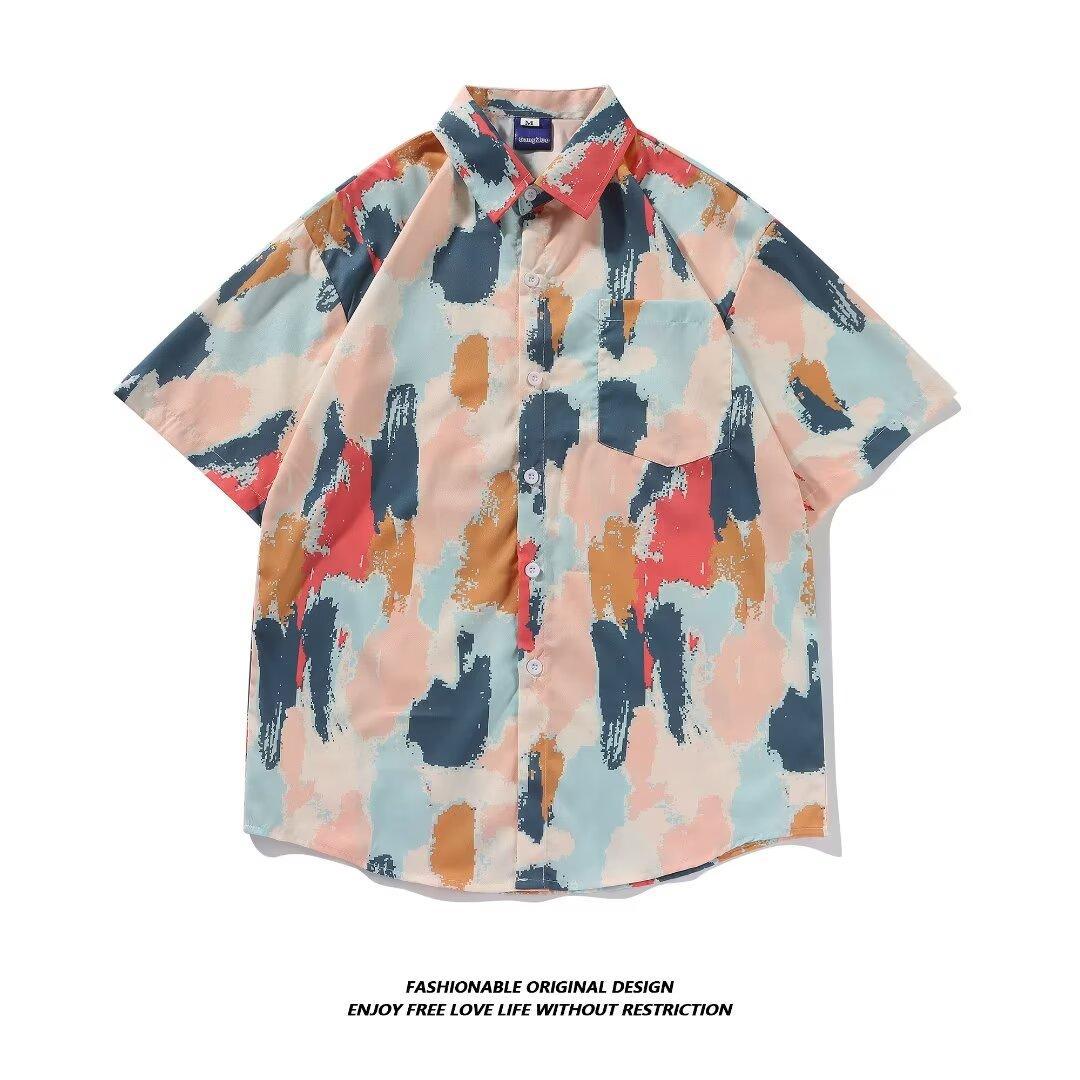 夏威夷花衬衫夏季男生衬衣宽松休闲半袖速干海边沙滩度假风花衬衫