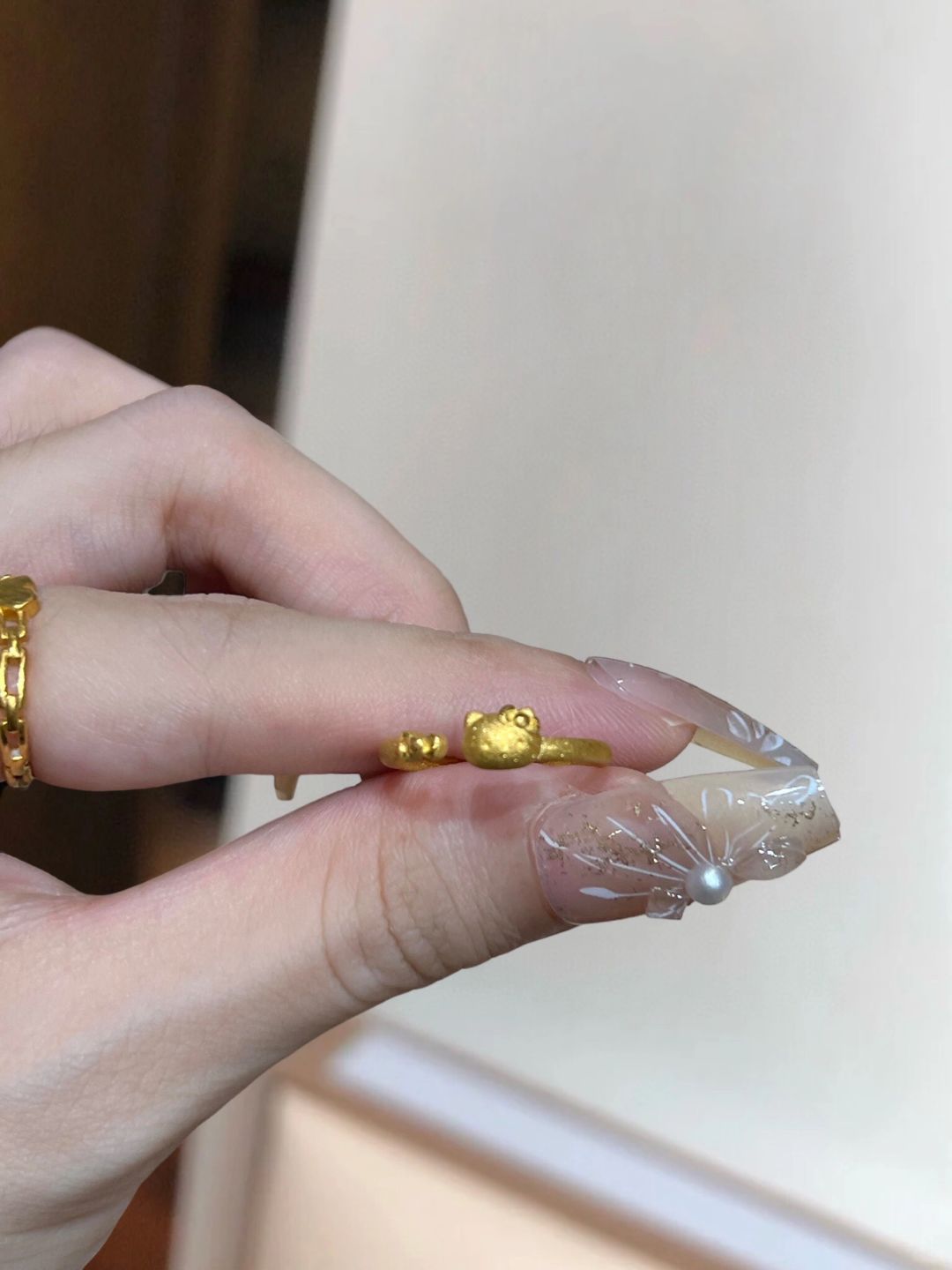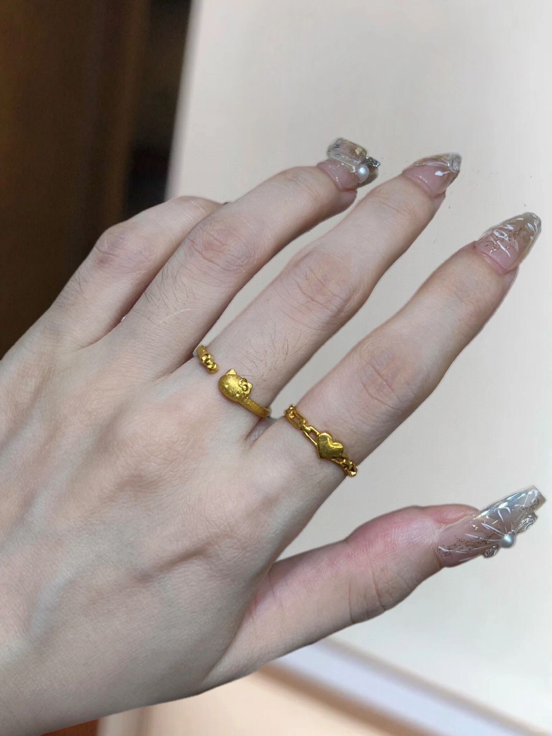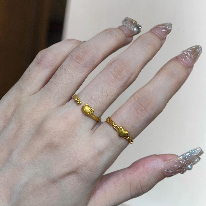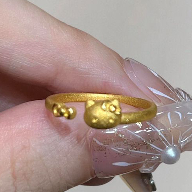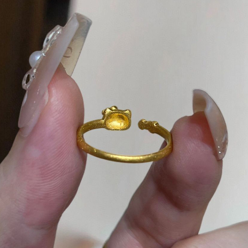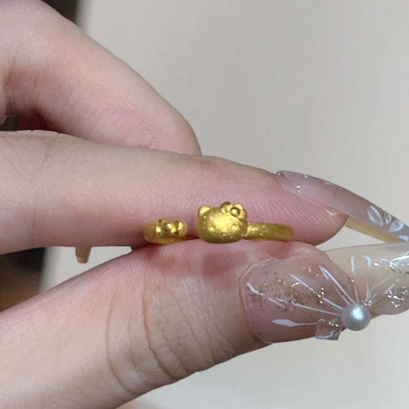 小红书爆款古法沙金kitty猫戒指女2025新款凯蒂猫蝴蝶结开口指环