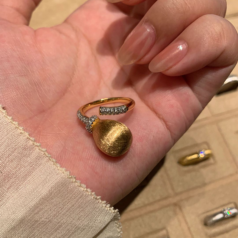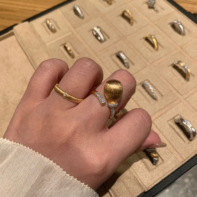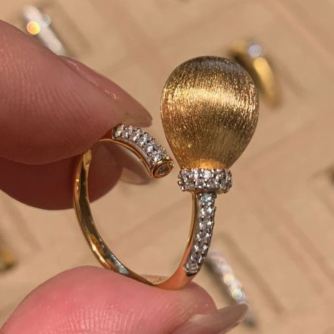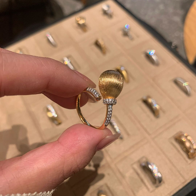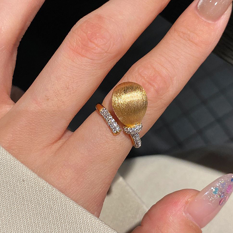 小红书爆款满钻爆闪松果戒指古法新中式可爱简约拉丝指环一件代发