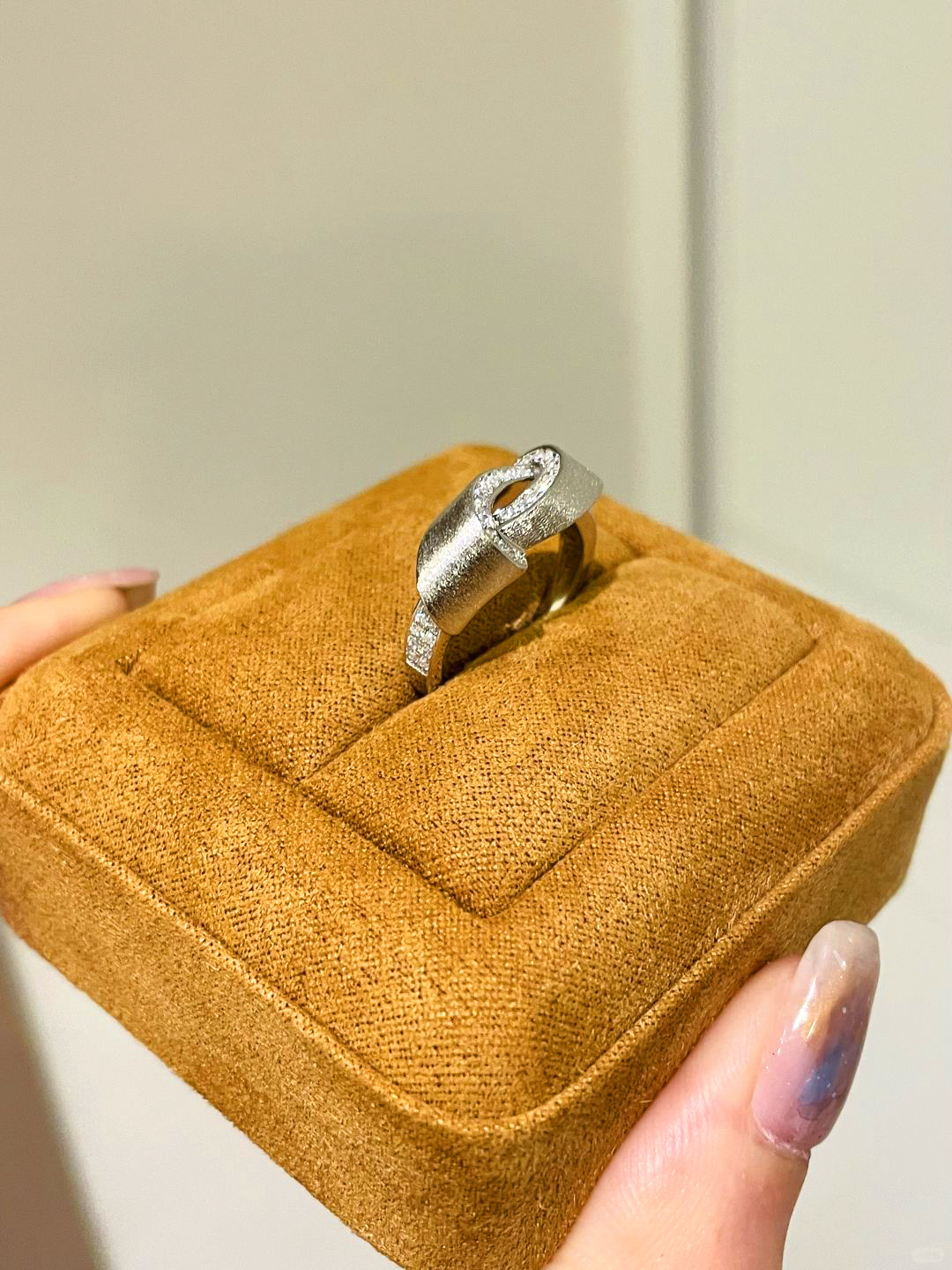 小红书同款交缠镶钻指环女轻奢复古手工拉丝莫比乌斯戒指一件代发