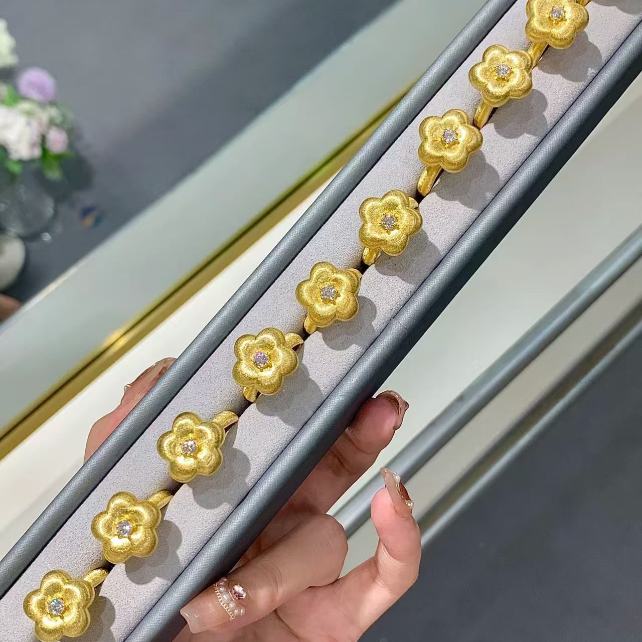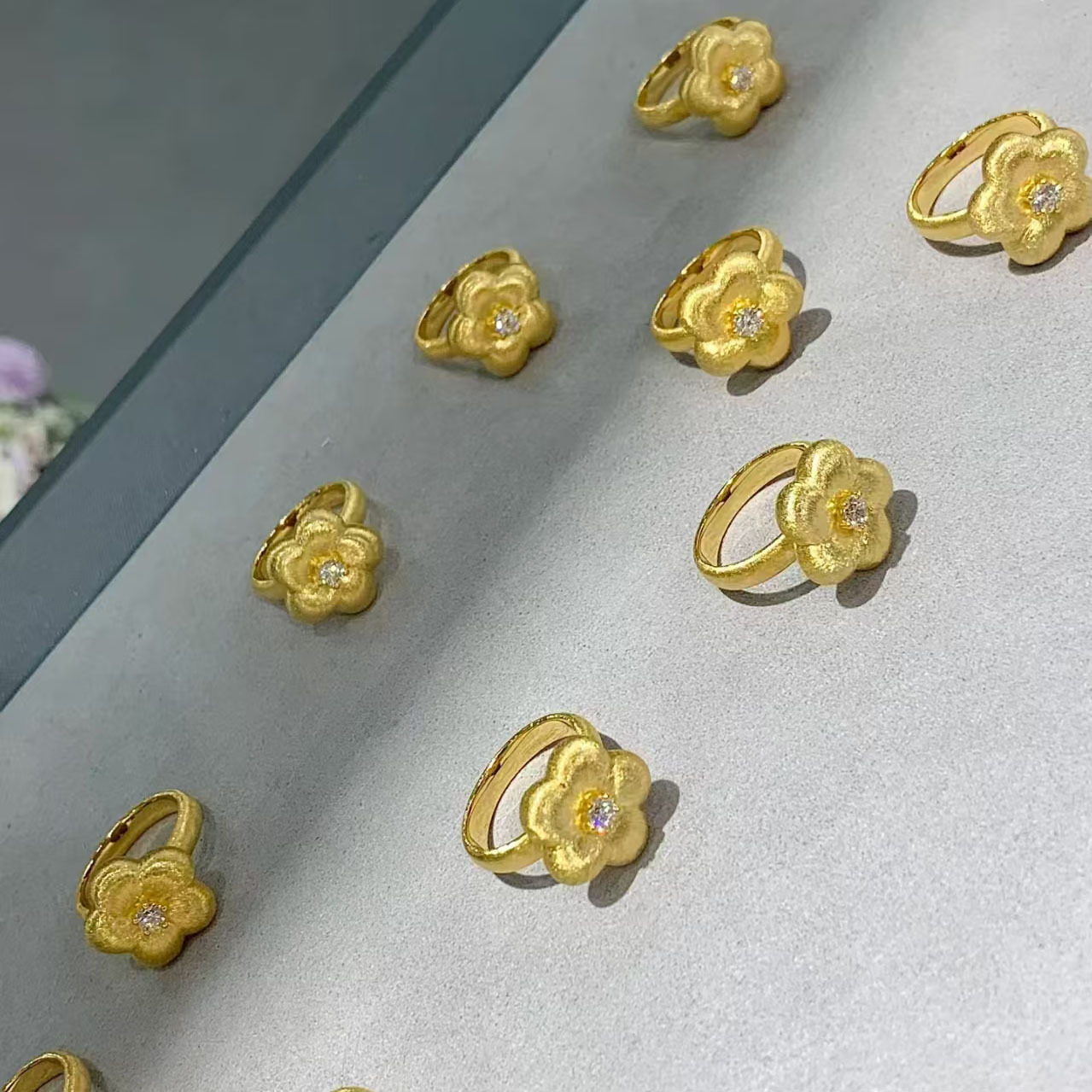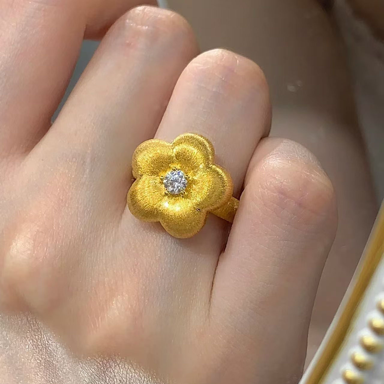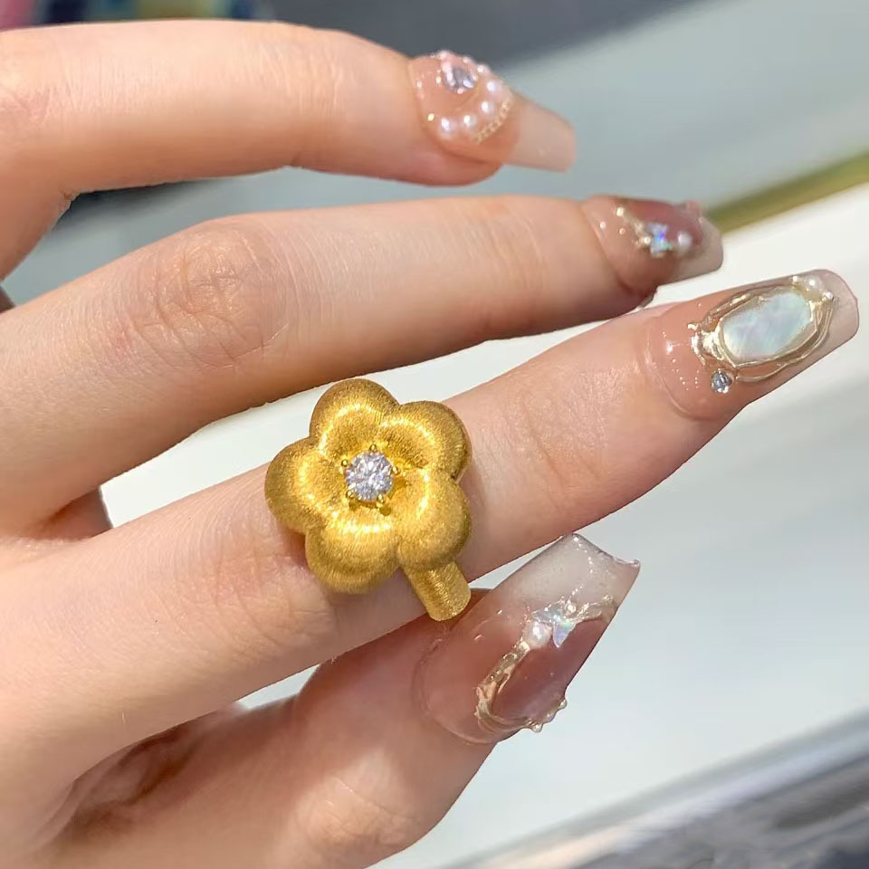 小红书同款梅花拉丝锆石戒指新款小众气质轻奢花蕊精致指环