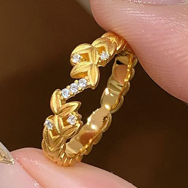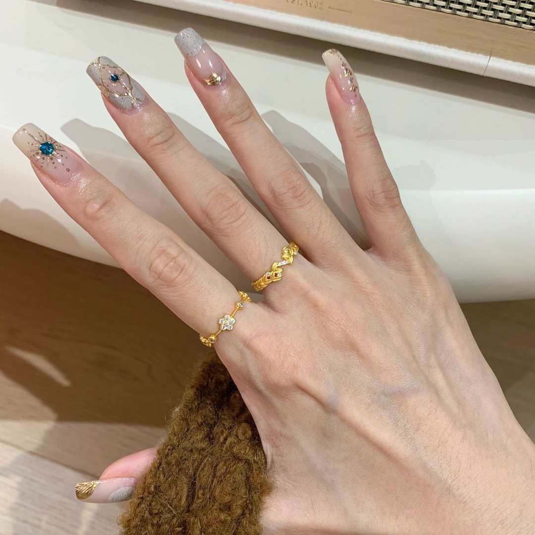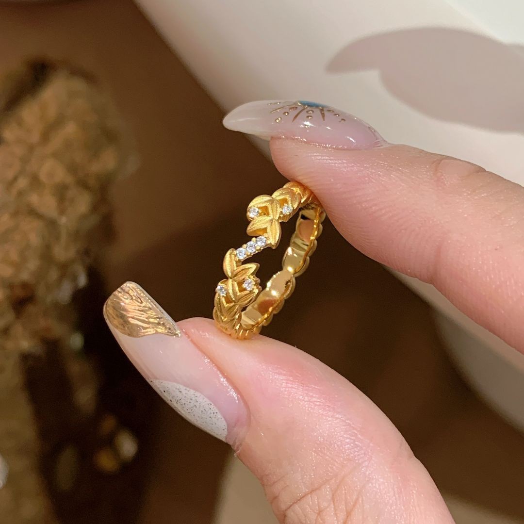 中古金色桂花戒指秋冬简约气质高级感高颜值精致锆石指环女