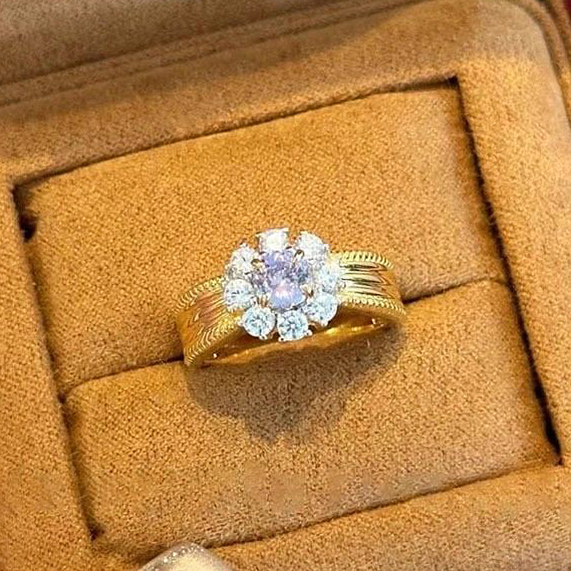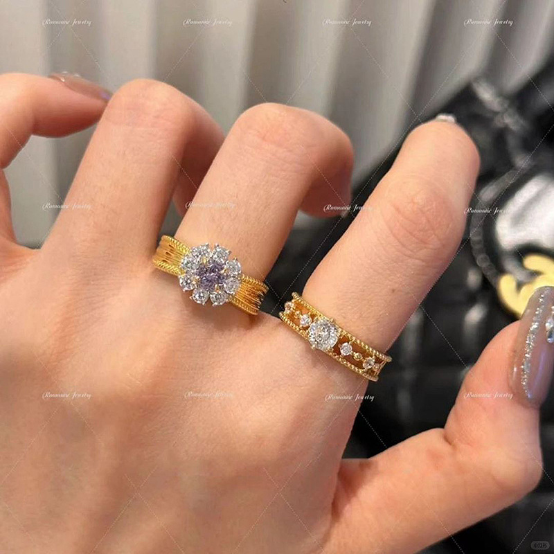 小红书爆款复古宫廷风太阳花香芋紫钻戒指新款老钱风满钻指环