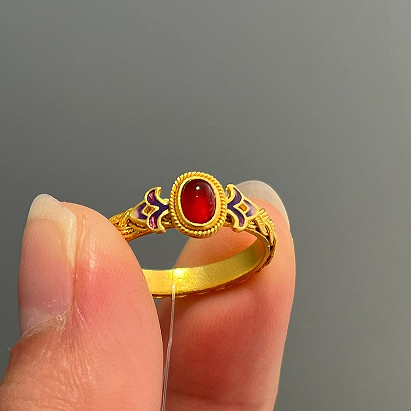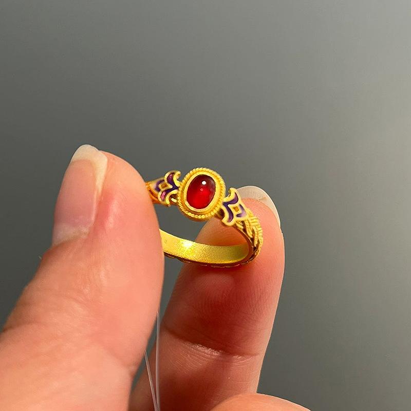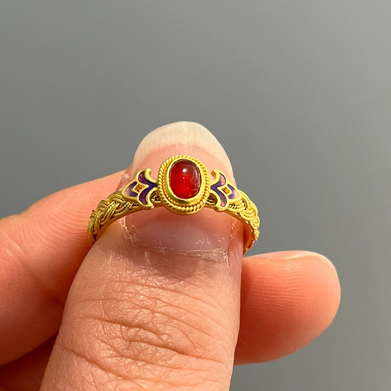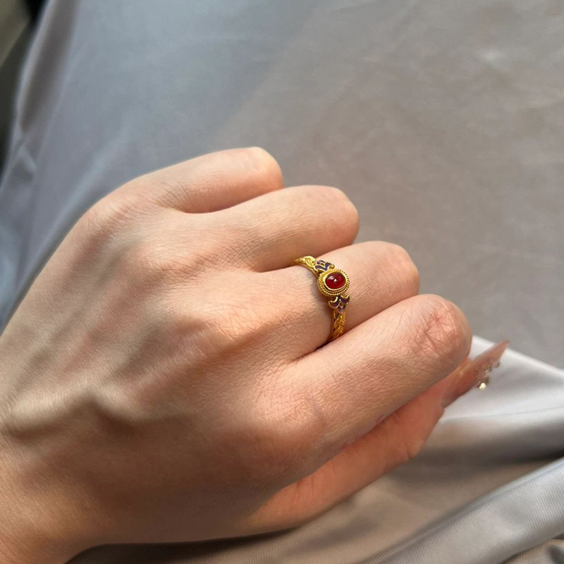 小红书爆款花丝凤鸢戒指复古宫廷风浮雕莺尾花纸鸢红玉髓浪漫指环