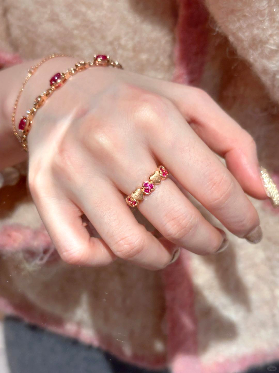 小红书爆款春日爱心戒指女糖果甜心复古拉丝桃心爆闪红刚玉指环