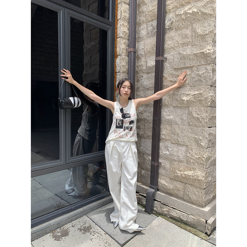 誉一 拖地牛仔裤女春季新款ins小众个性高腰褶皱宽松阔腿裤女