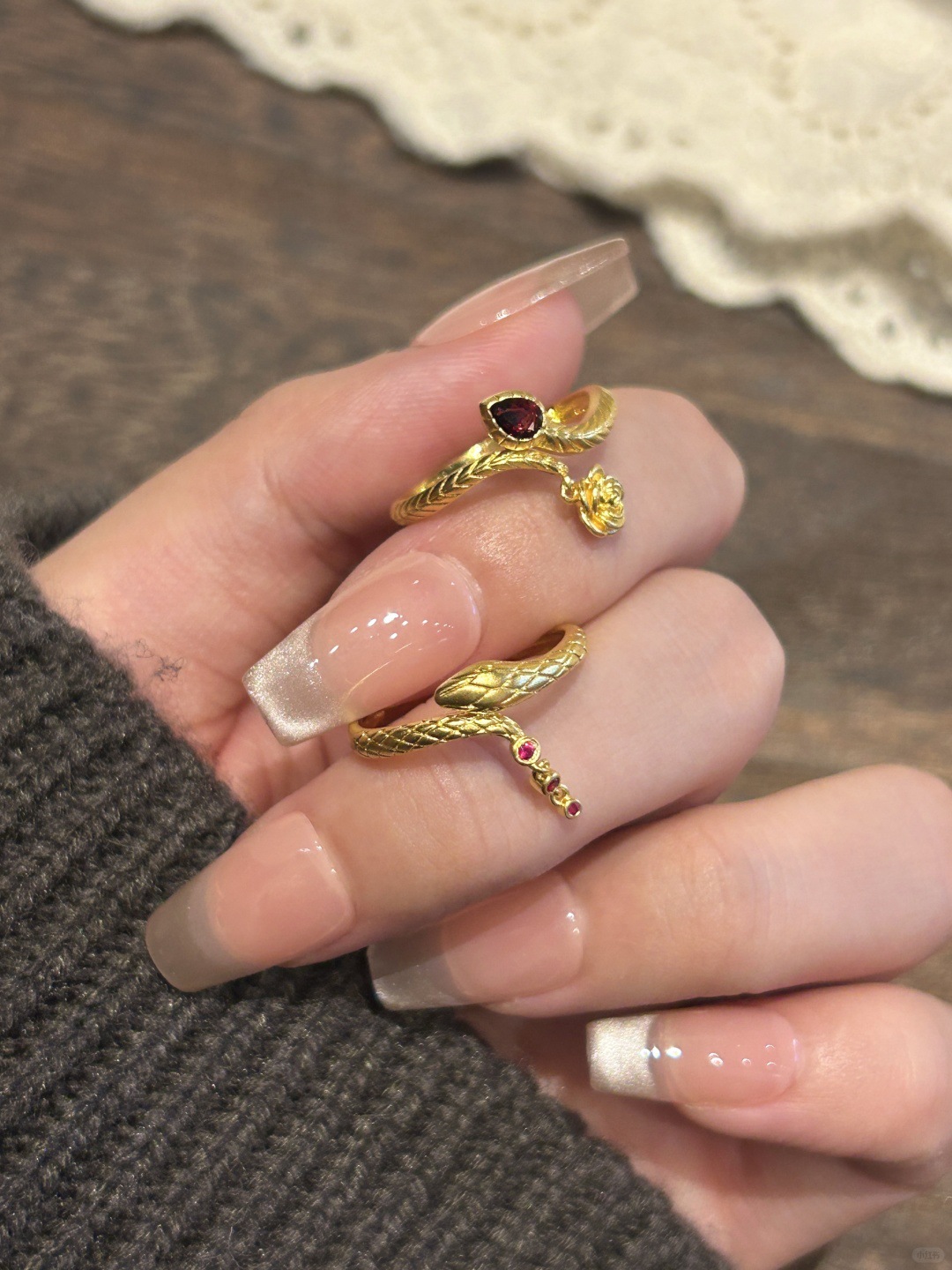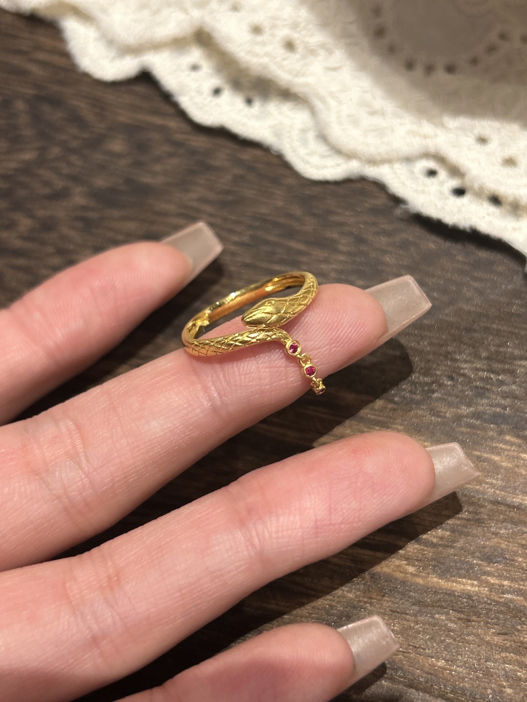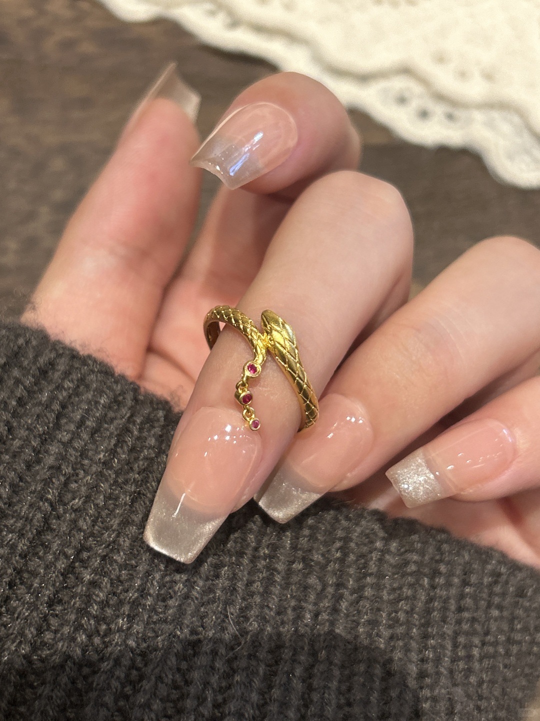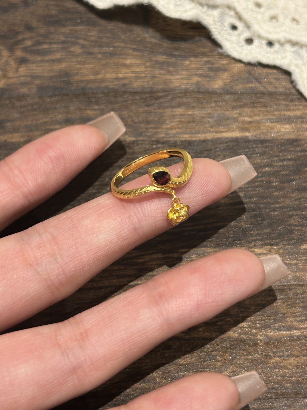 小红书爆款生肖蛇形本命年戒指古法重工玫瑰灵蛇流苏指环