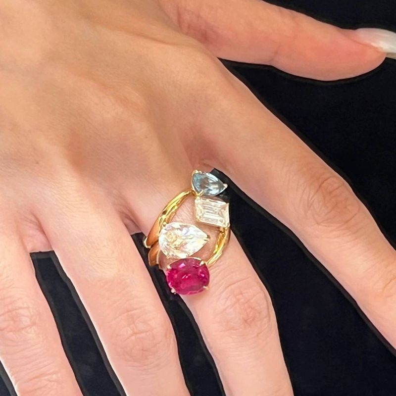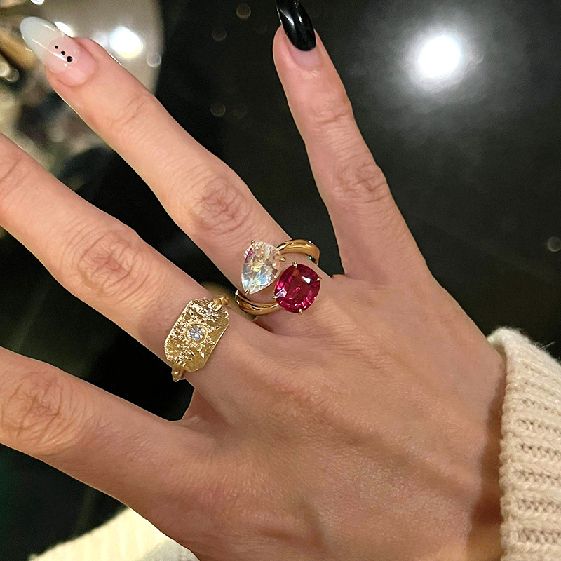 小红书爆款卢比莱碧玺红宝戒指2025新款时尚轻奢大克拉精致指环