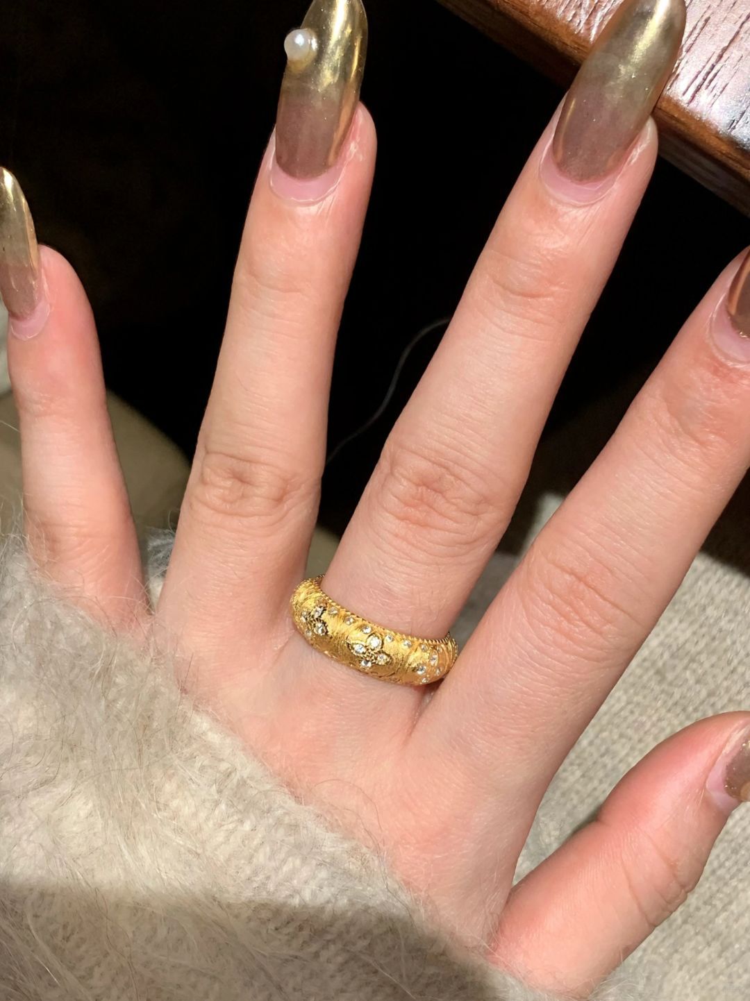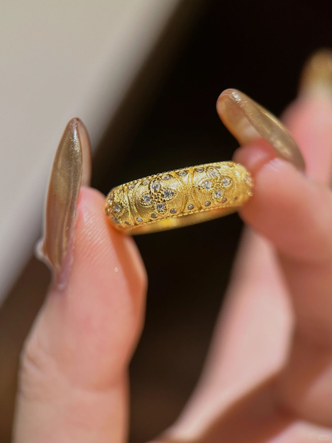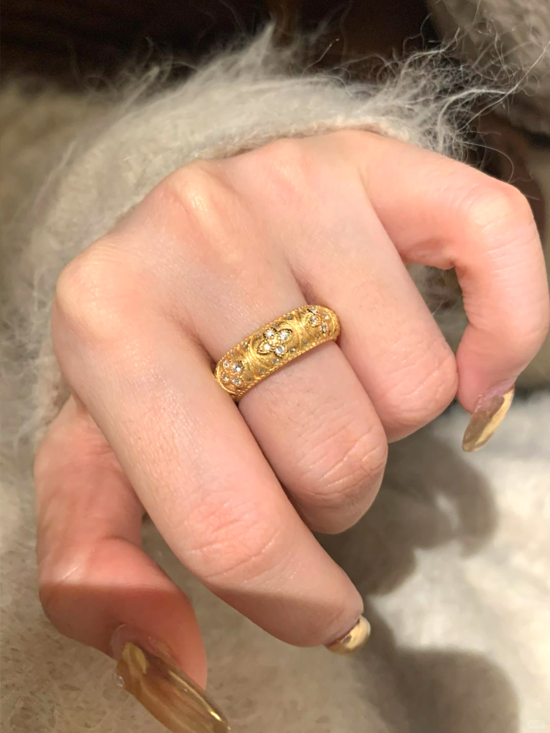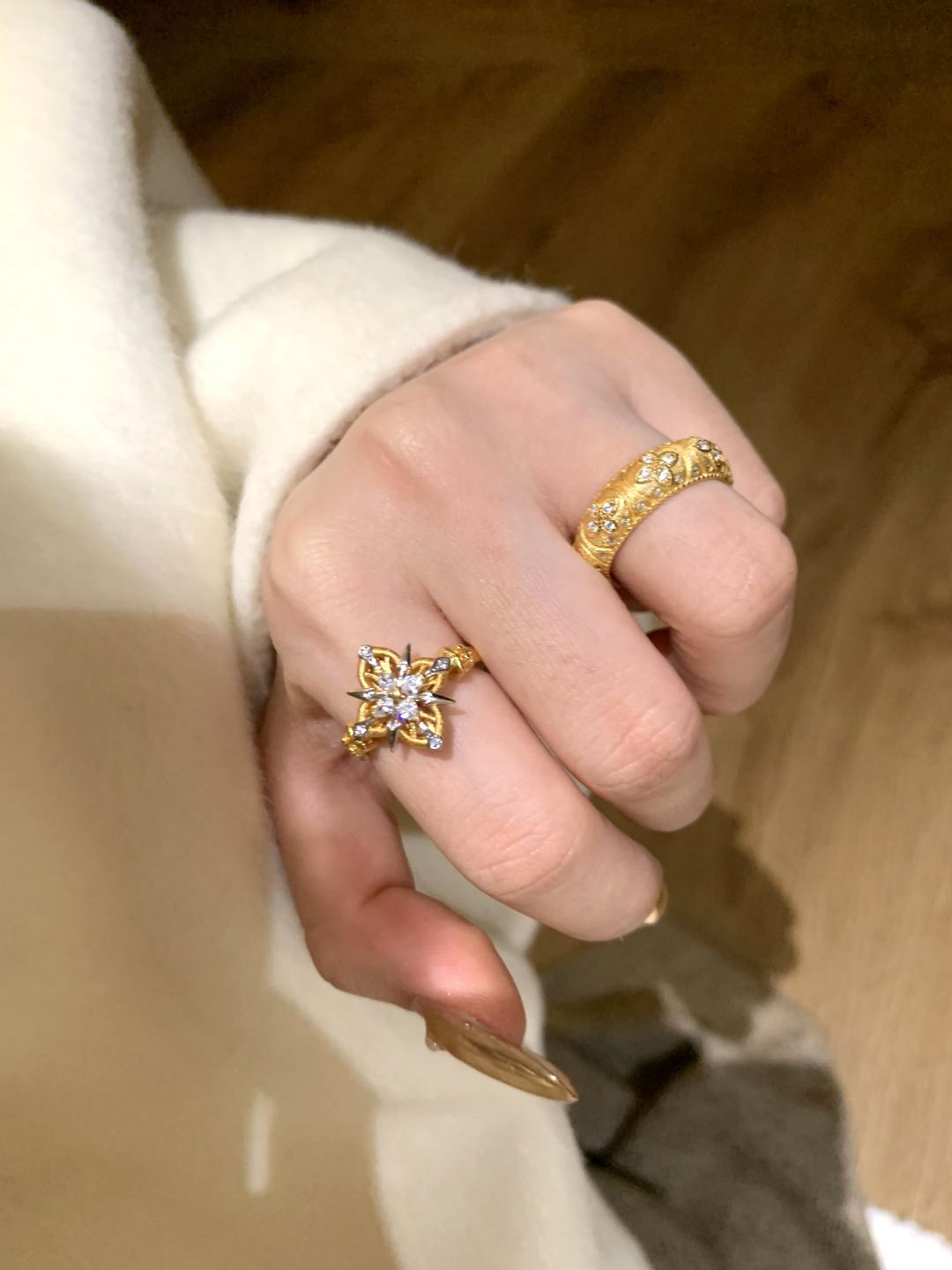 小红书爆款爆闪拉丝四叶草戒指2025新款古法重工四叶灯笼雕花指环