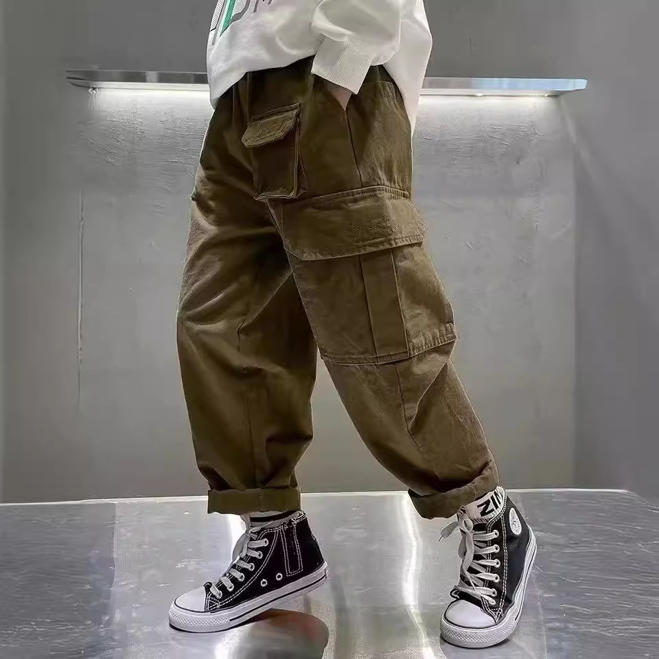 童装纯棉工装裤男童韩版个性高街春秋季新款ins长裤中大童休闲裤