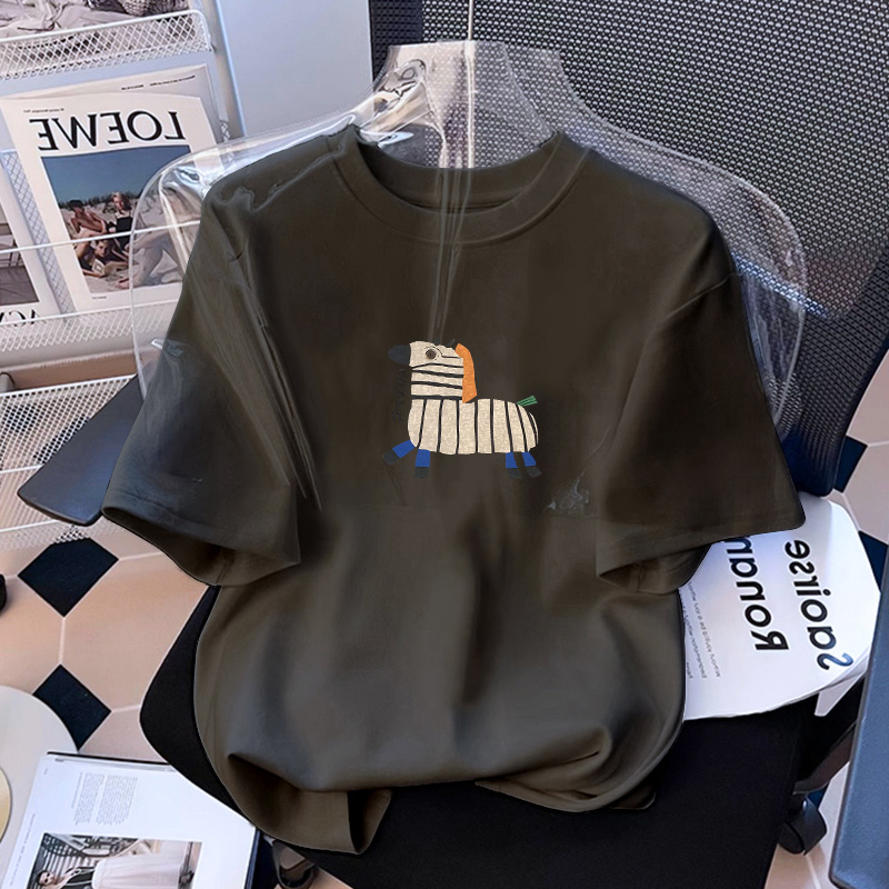 2025夏季新款灰色全棉短袖t恤女宽松百搭显瘦卡通印花小个子上衣