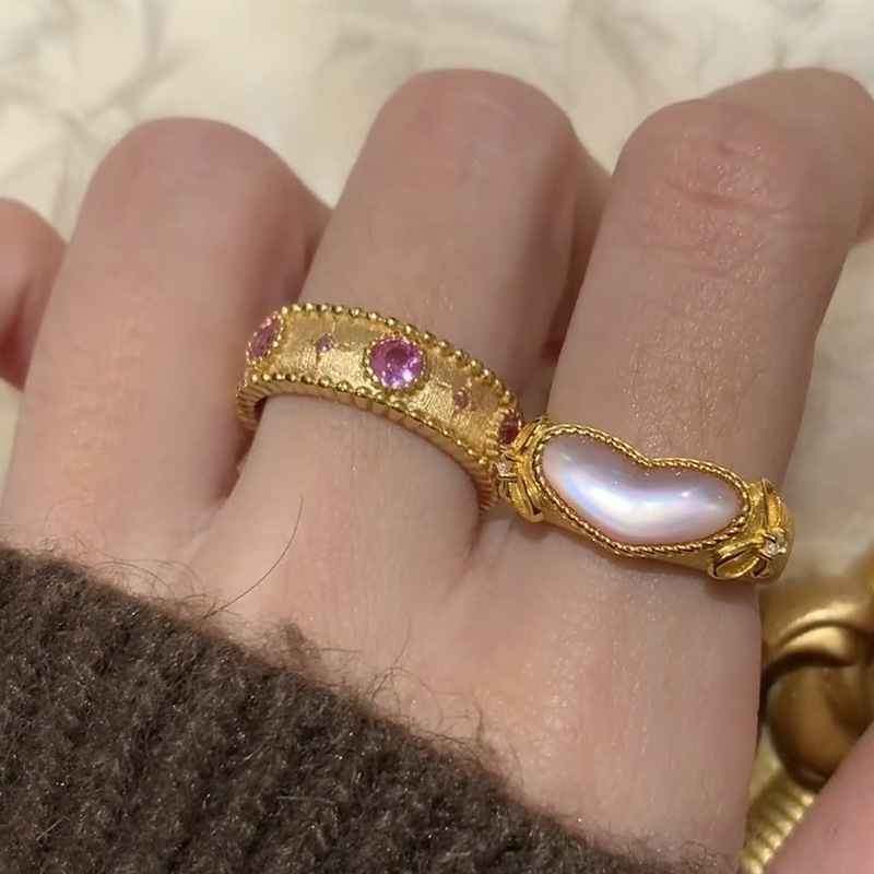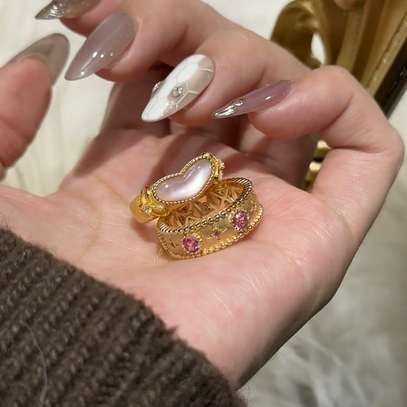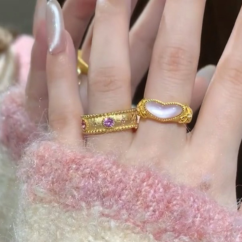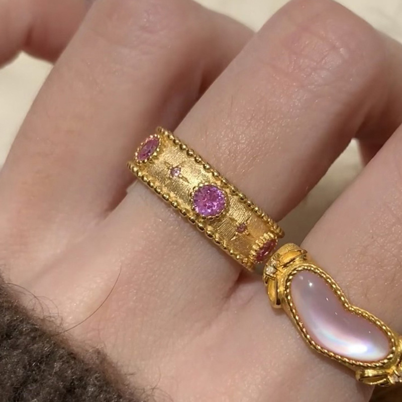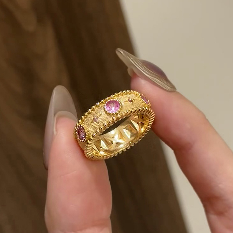 小红书爆款意大利工艺复古宫廷风粉钻芒星戒指宽版小众女