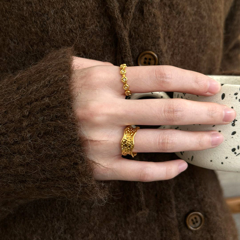 小红书爆款中古风缎带戒指女2025新款不规则宽版叠戴指环
