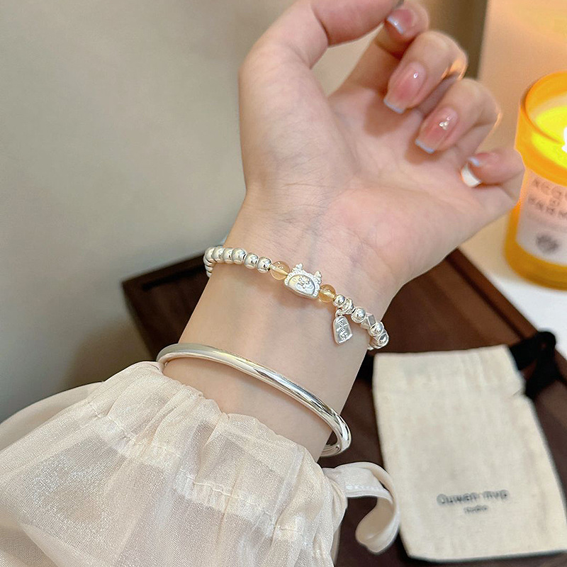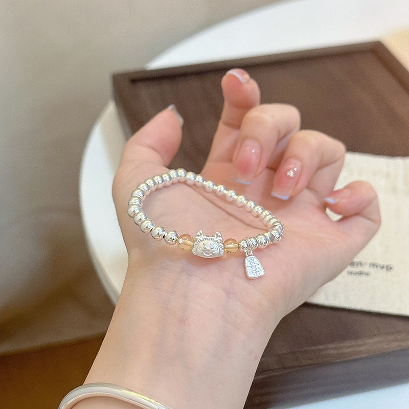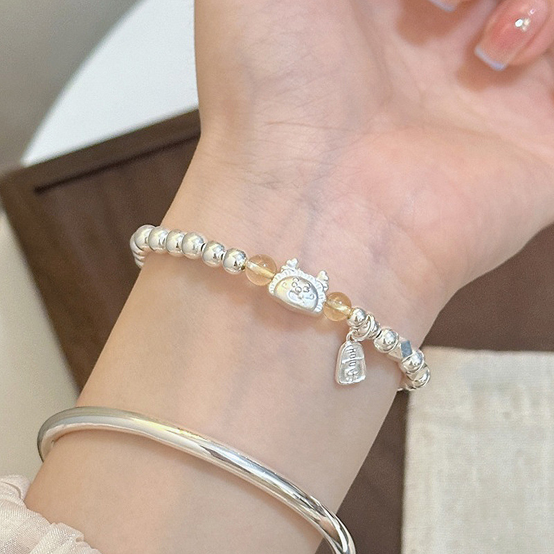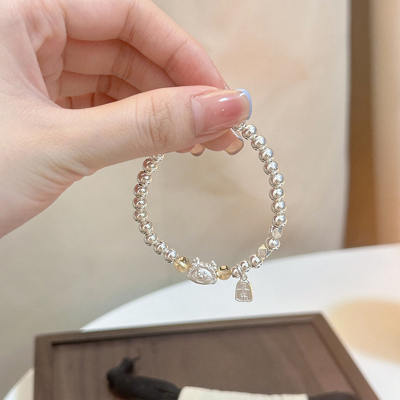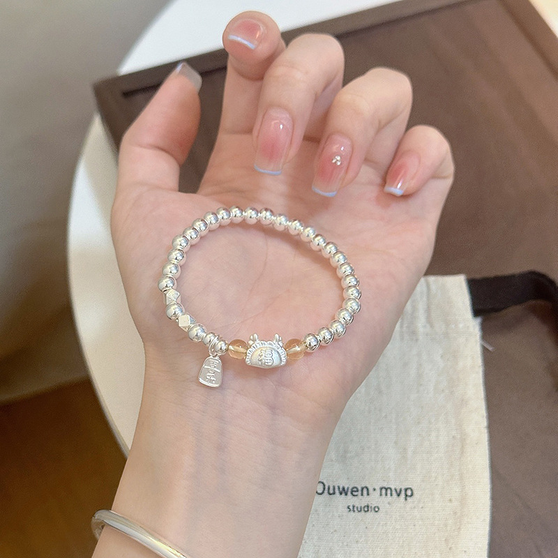 小红书同款龙饺手链新款小众设计高级银珠手串精致银色手饰品