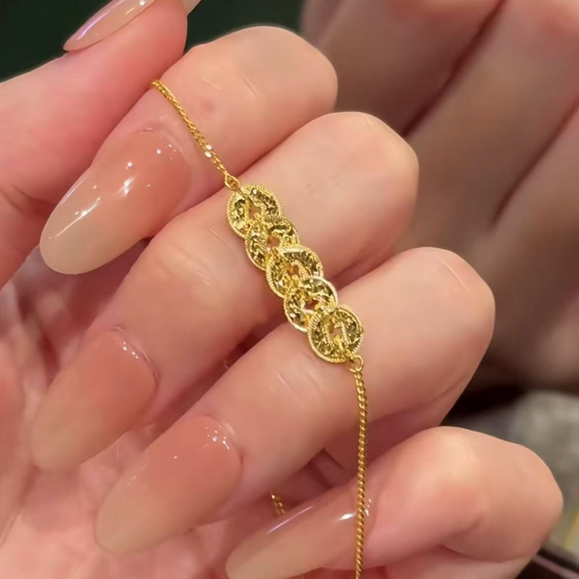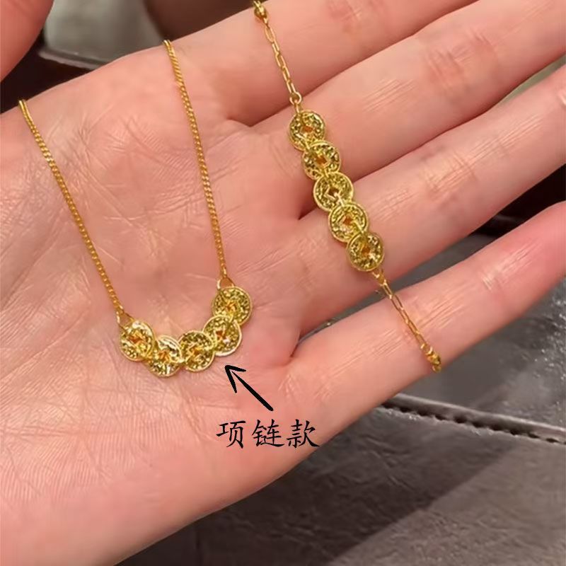 小红书爆款新中式爆闪碎冰冰五帝币手链女2025新款古法钱多多项链