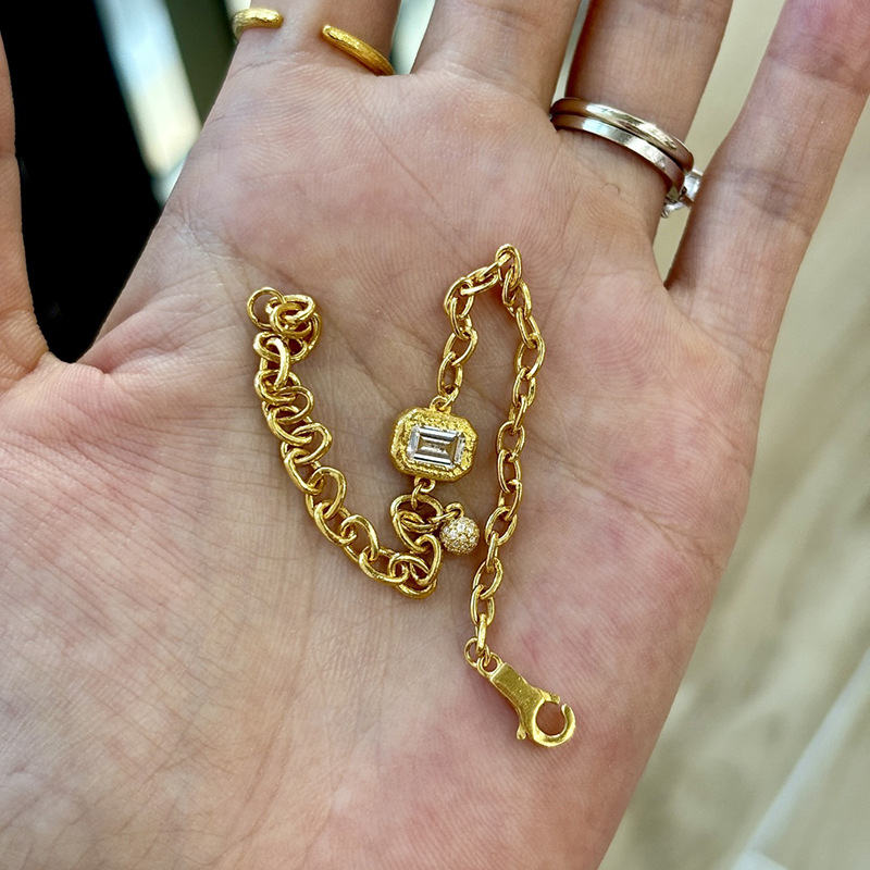 小红书爆款古法金方钻手链新款新中式DIY粗款链条手环手饰品