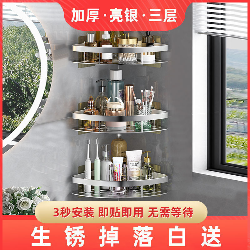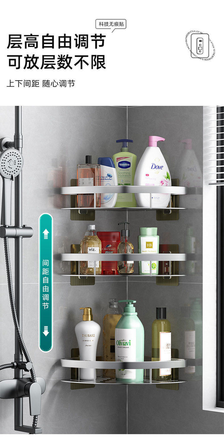 免打孔浴室收纳置物架卫生间壁挂式多层三角厕所转角挂墙防水吸盘