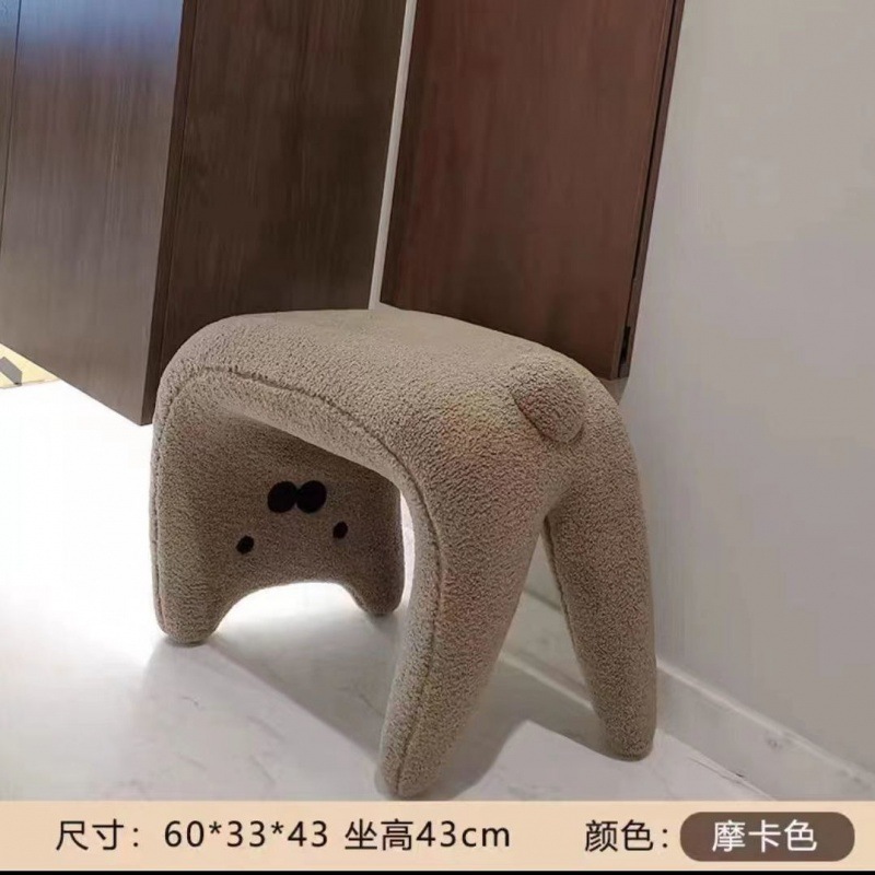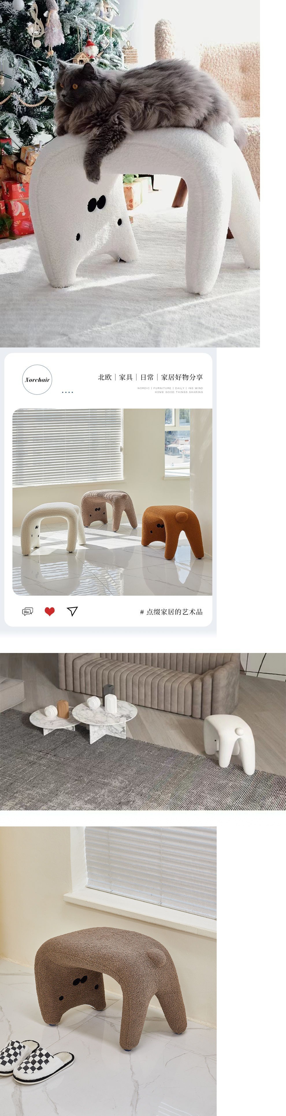 网红猫咪化妆凳梳妆凳门口换鞋凳客厅矮凳动物造型座椅羊羔毛玄关