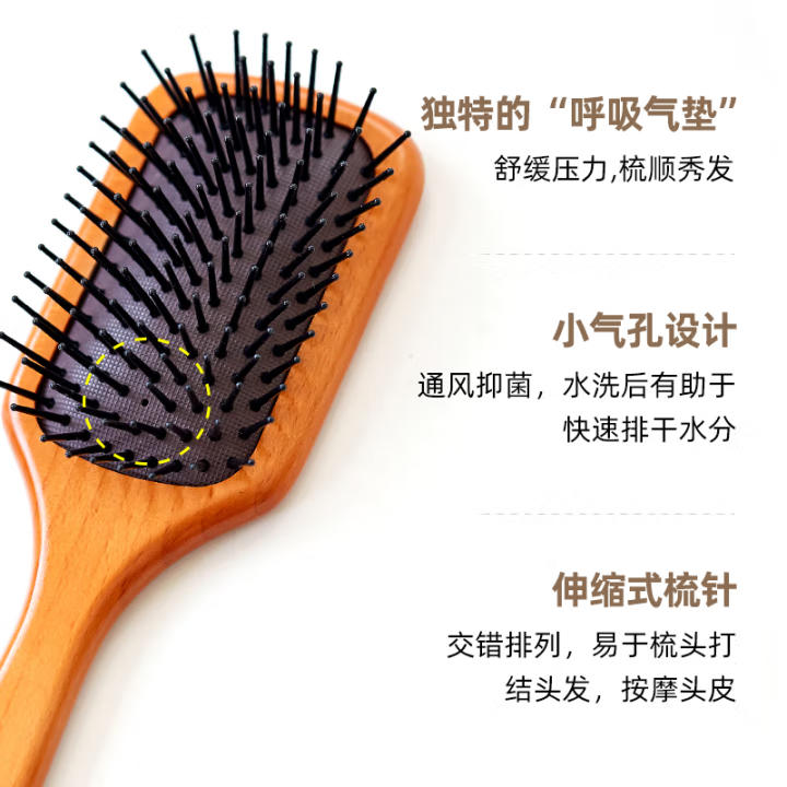 【均匀齿梳 顺畅梳发】黑檀木梳