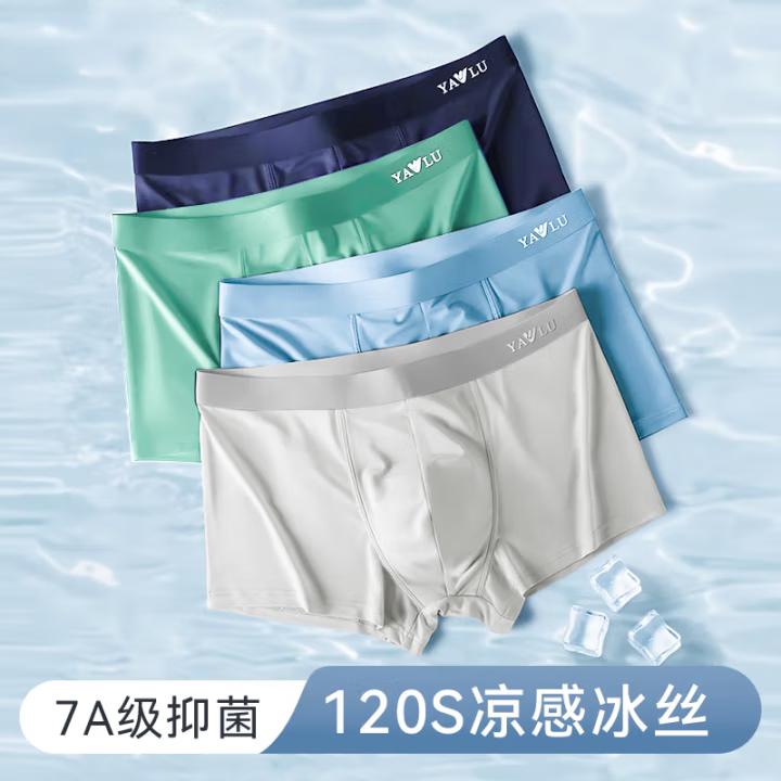 男士内裤男夏季冰丝无痕抗菌大码四角男式平角裤青年男生短裤衩