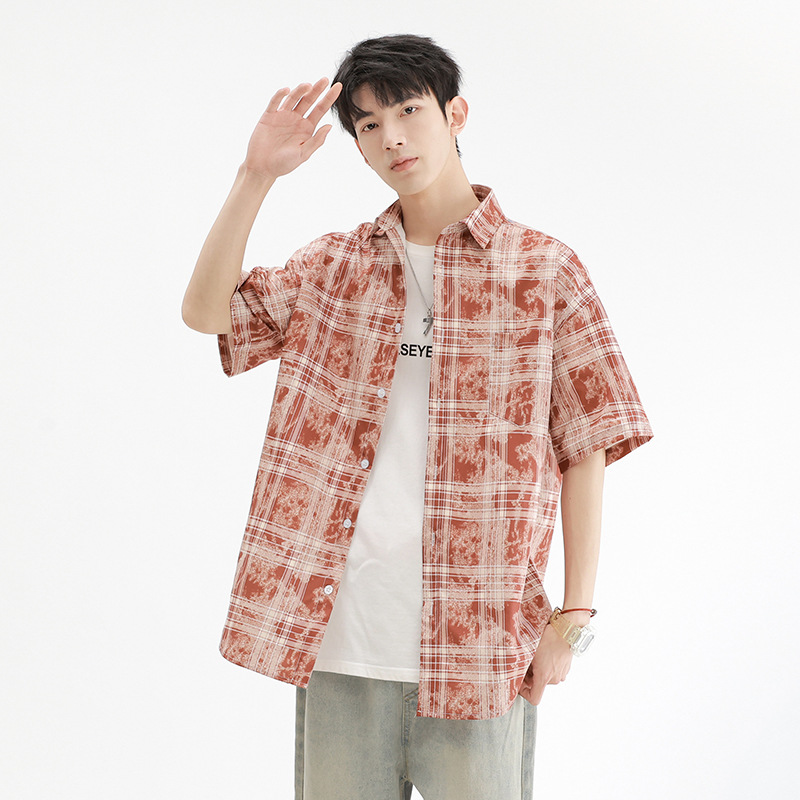 格子衬衫男生夏季新款港风休闲短袖衬衣宽松潮牌外套上衣寸衣