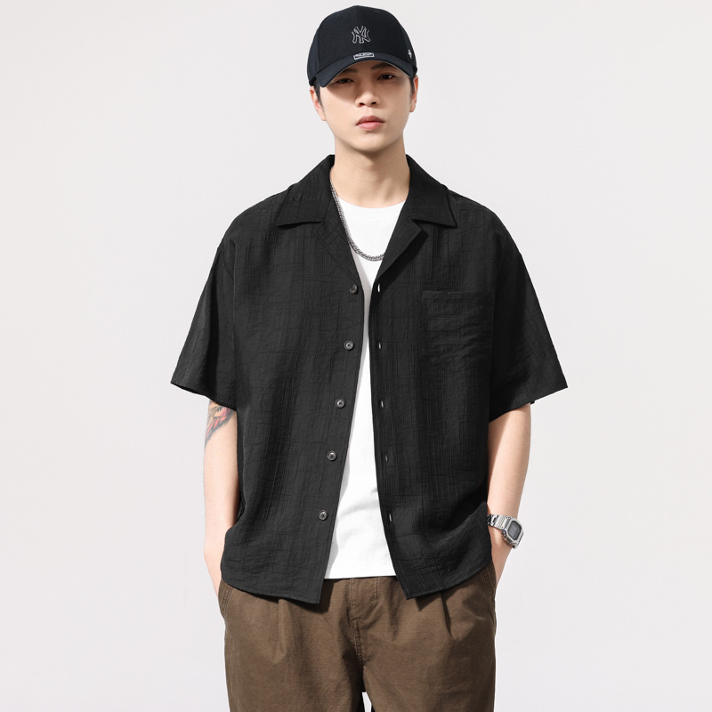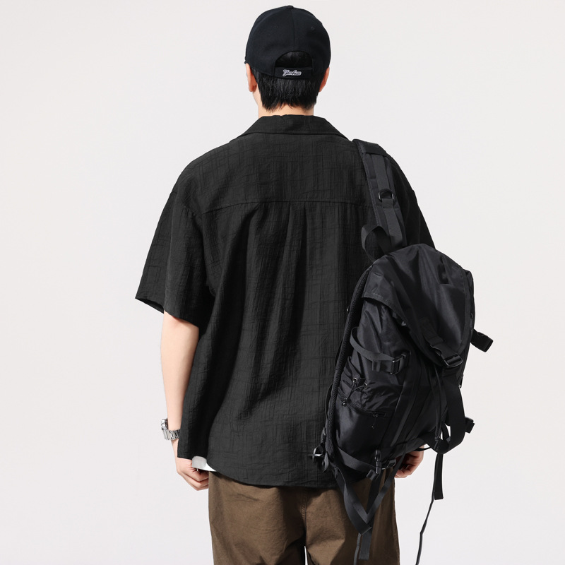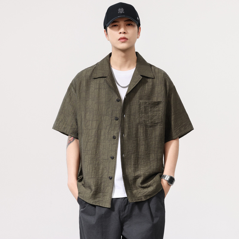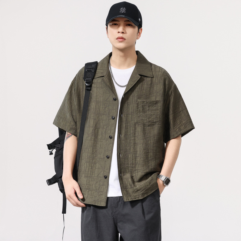 108g莱赛尔短袖衬衫男夏季薄款美式复古宽松大码衬衣休闲开衫外套