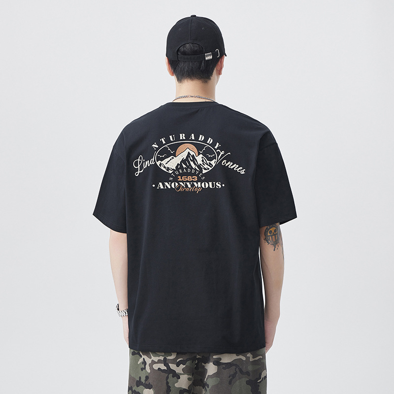 凉感抗菌短袖男夏季2025新款美式复古潮流T恤男休闲宽松上衣男装