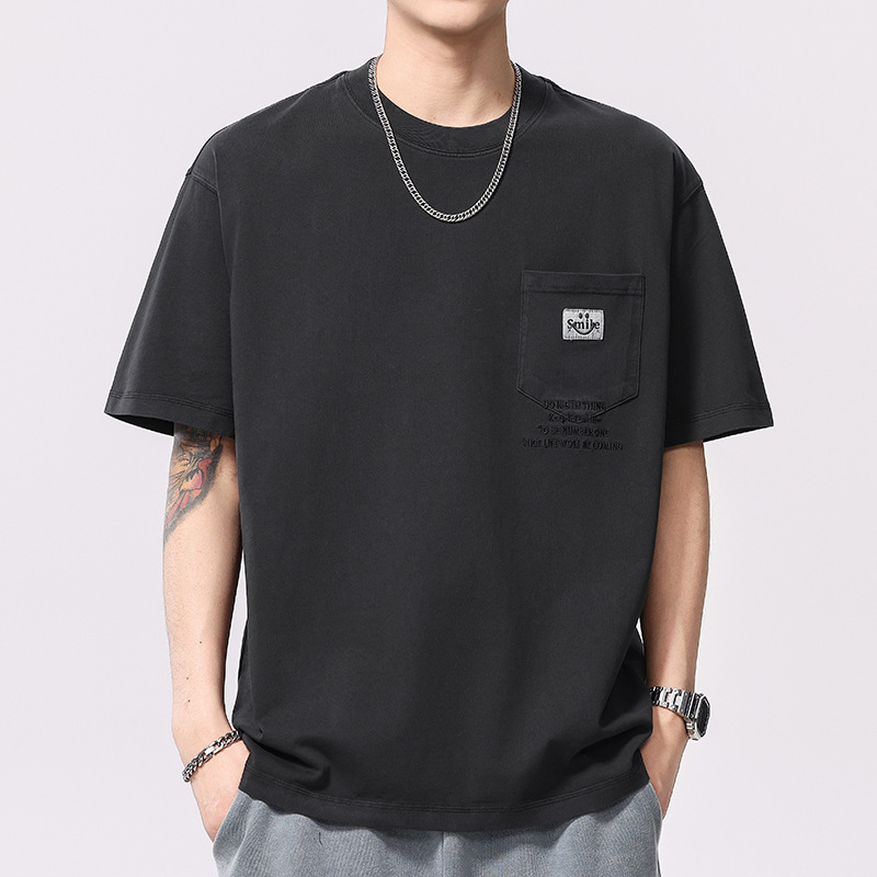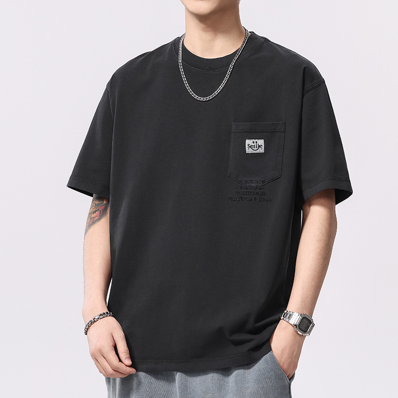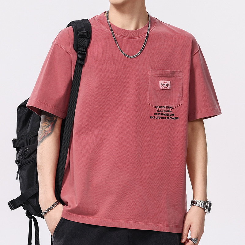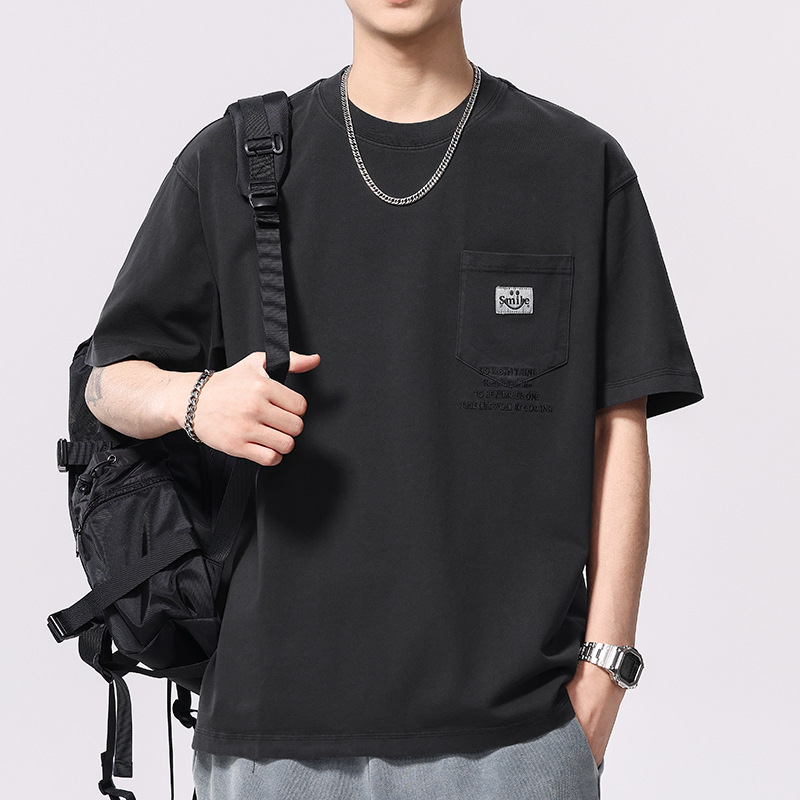 高端美式纯棉重磅石磨水洗T恤男短袖2025夏季新款体恤宽松上衣男