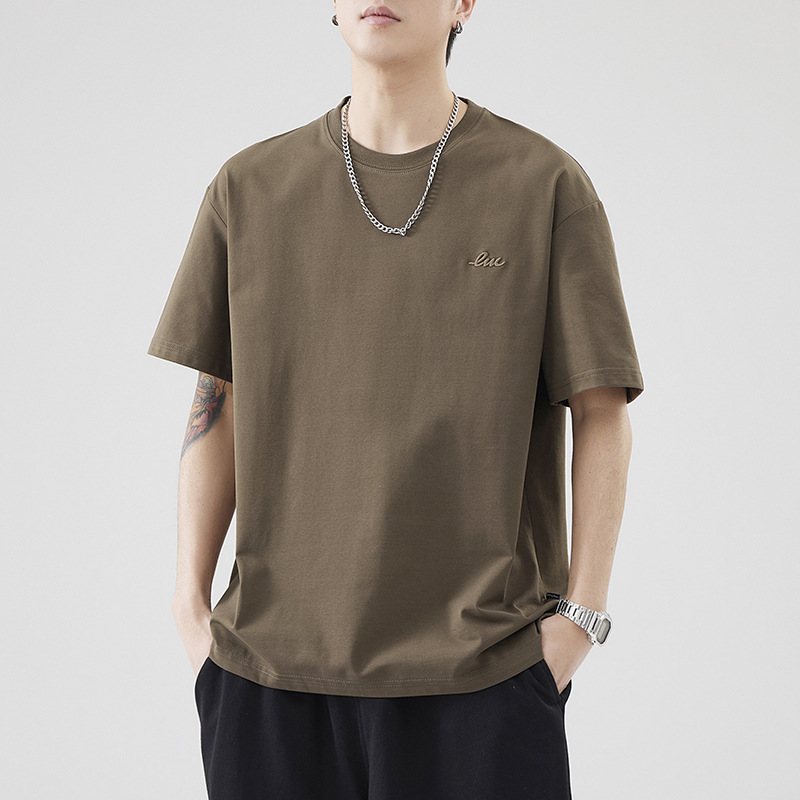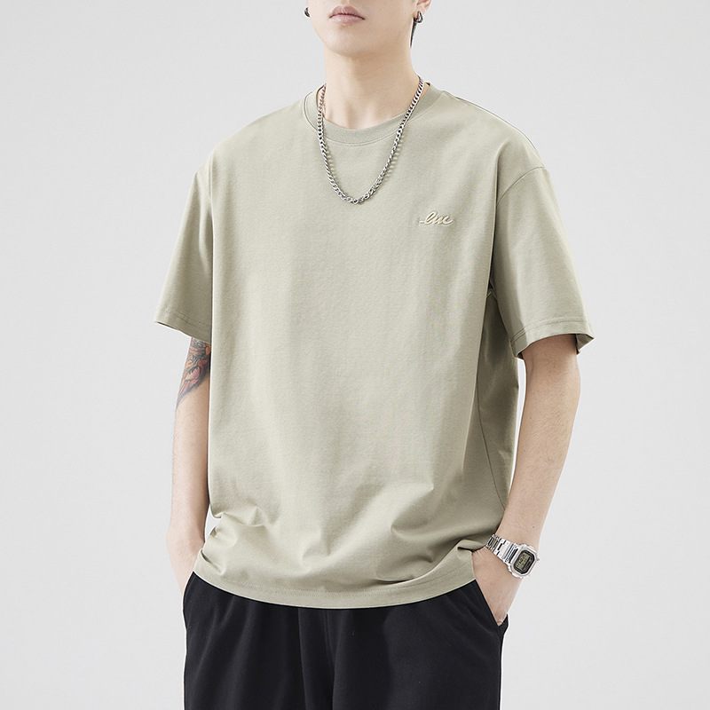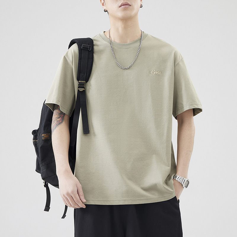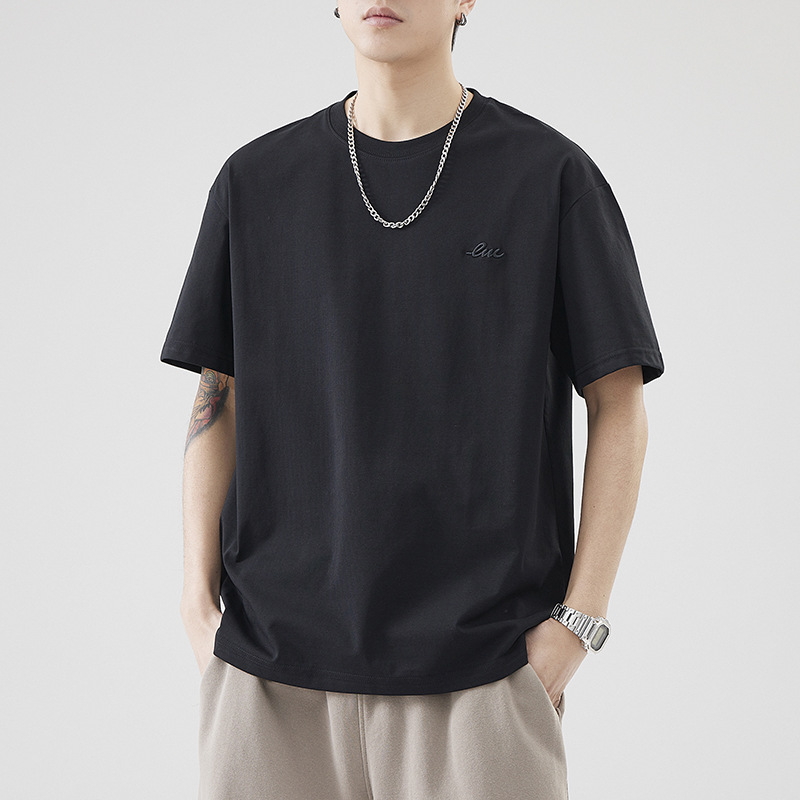 2025夏季新款精梳棉冰丝凉感短袖t恤男宽松透气半袖T美式休闲体恤