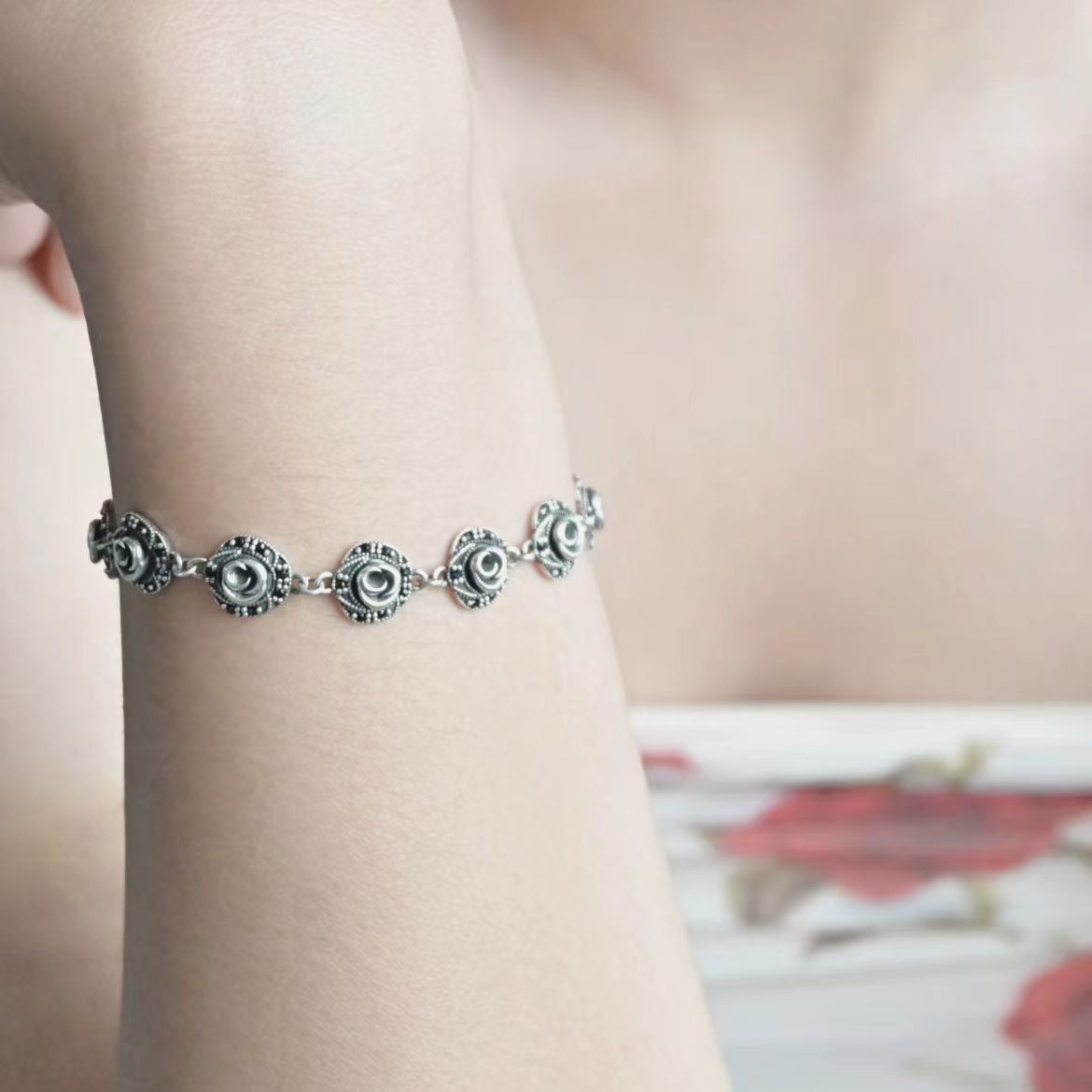 新款瑞秋同款玫瑰花手链复古小众设计感饰品