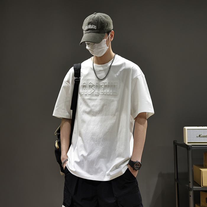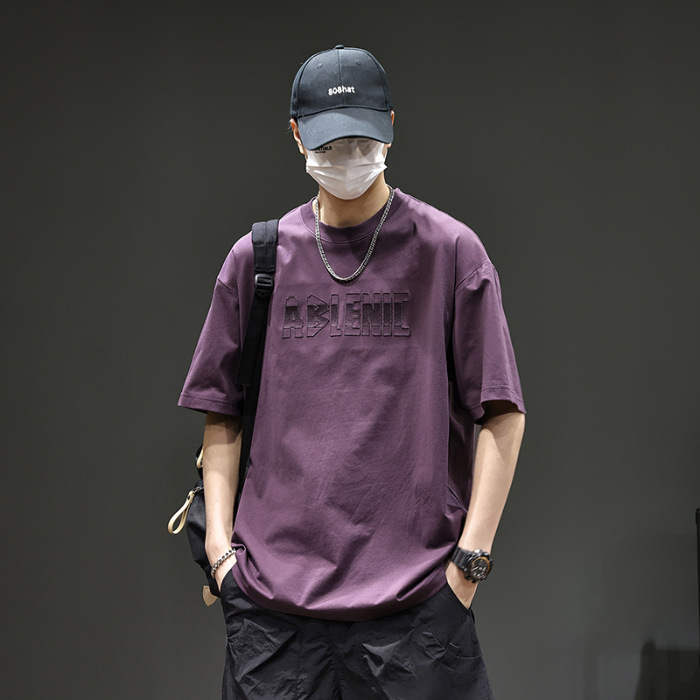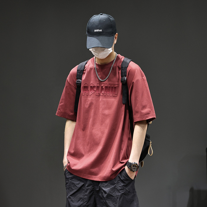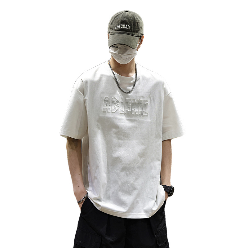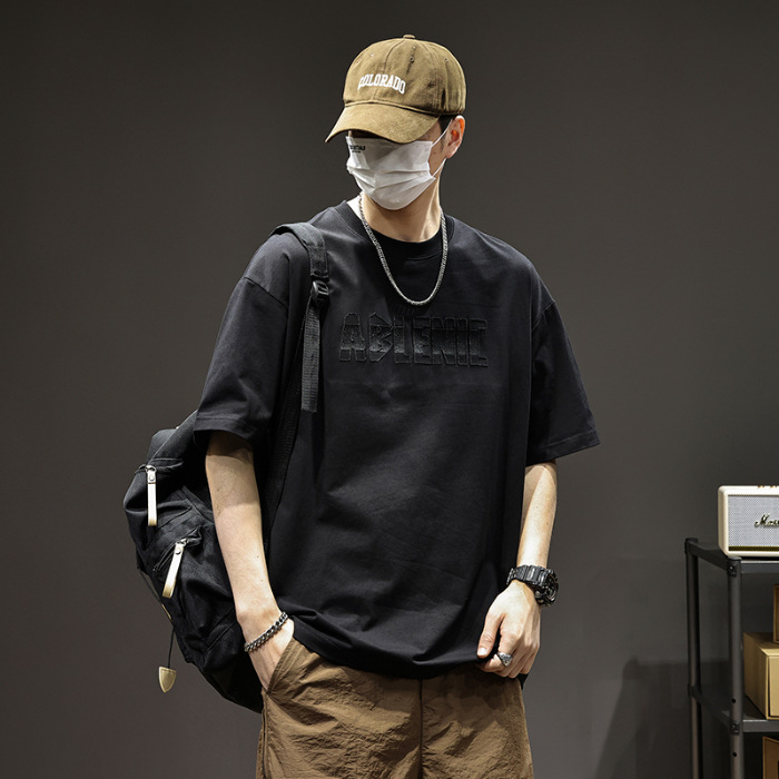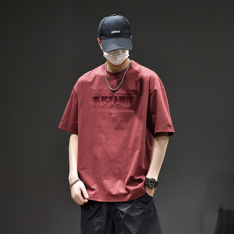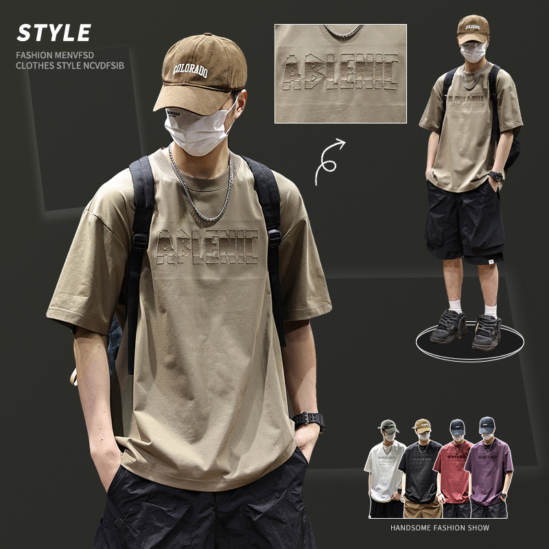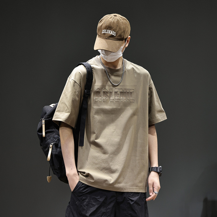 美式重磅短袖T恤男2025夏季薄款圆领凉感科技棉上衣宽松印花体恤