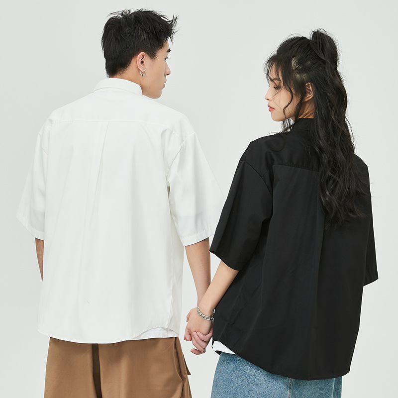 日系潮牌短袖衬衫男士夏季薄款翻领潮流休闲宽松百搭衬衣男款t恤