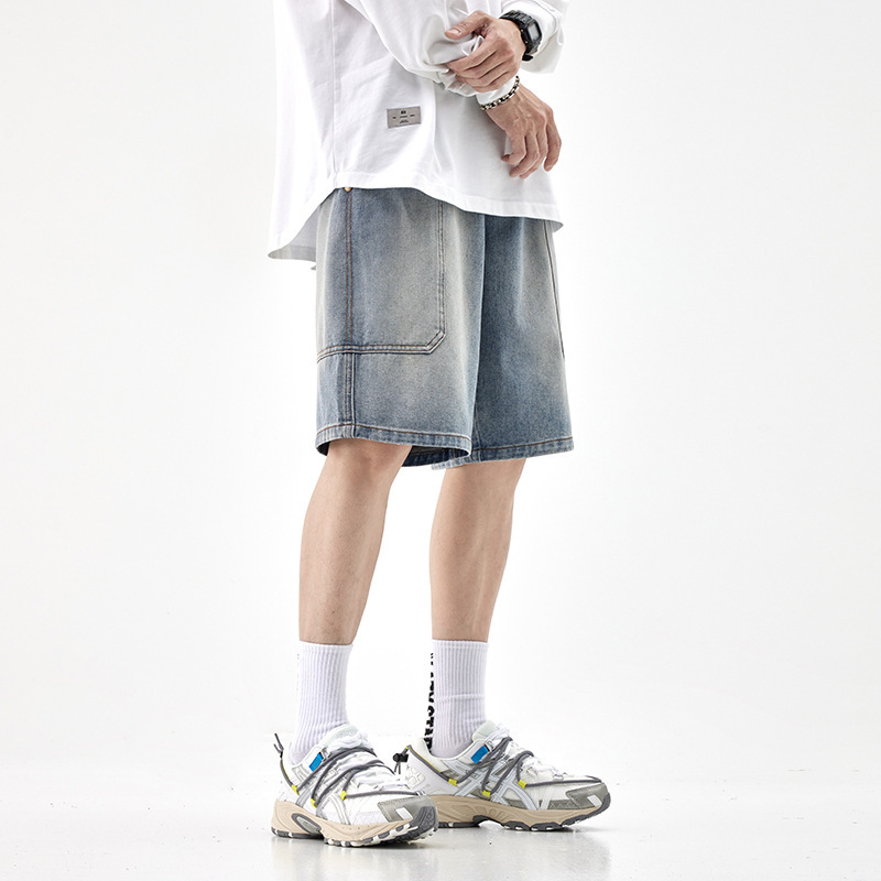 牛仔短裤男款宽松美式复古潮牌大码直筒口袋小众设计感工装五分裤