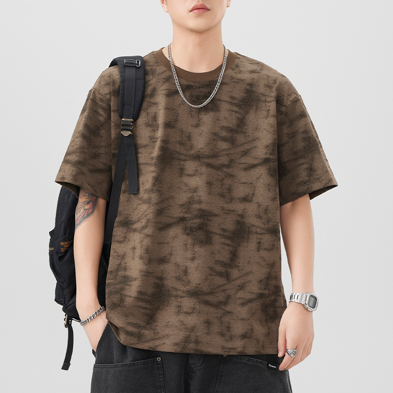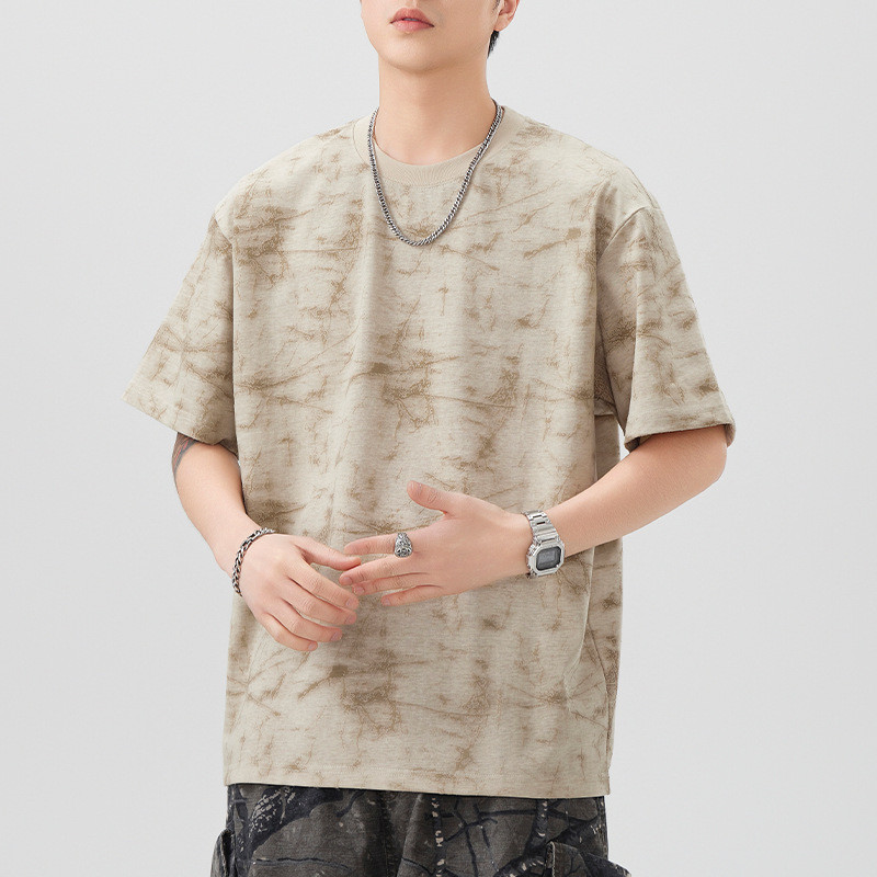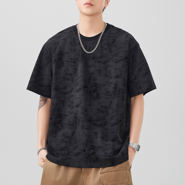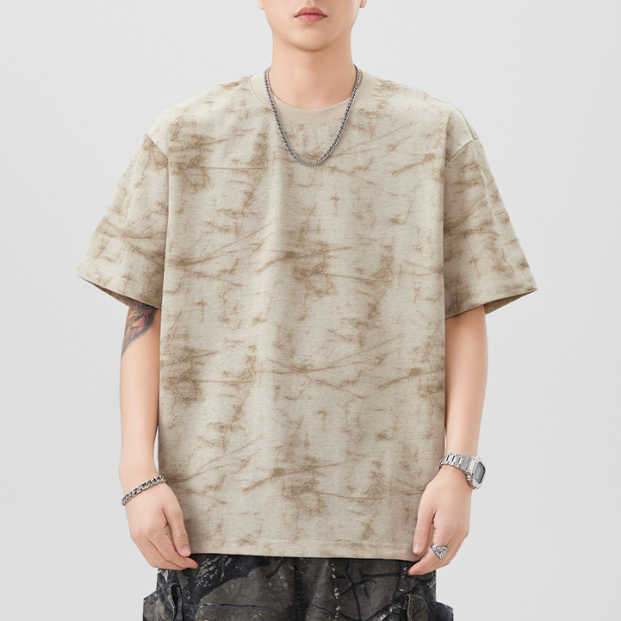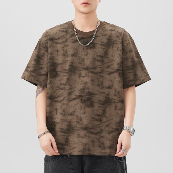 轻奢潮牌扎染T恤男短袖2025夏季新款宽松大码美式复古半袖体恤衫