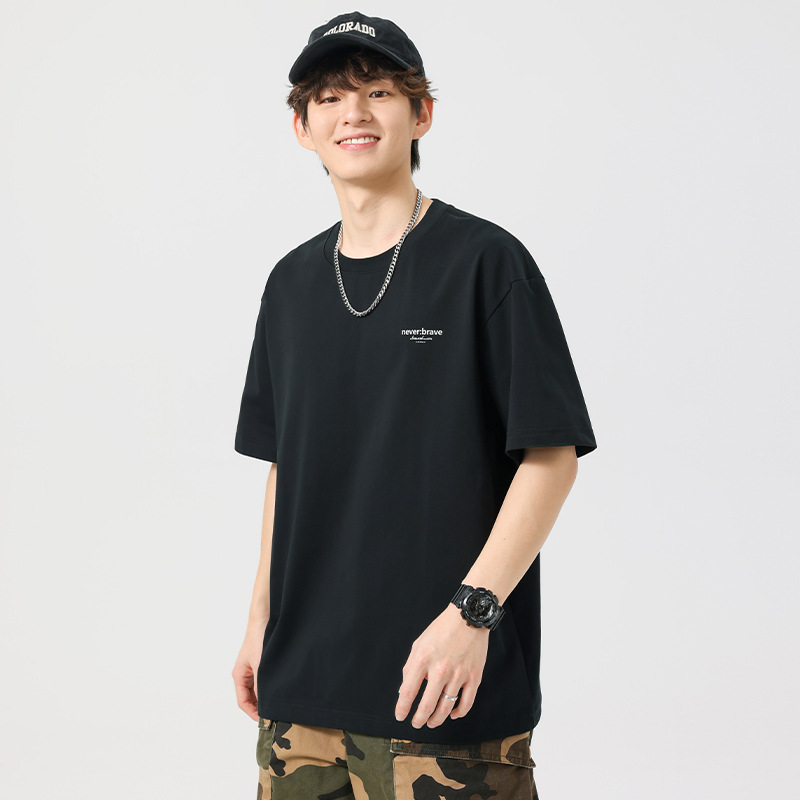速干透气休闲T恤男生2025夏季新款字母印花短袖宽松舒适体恤衫男
