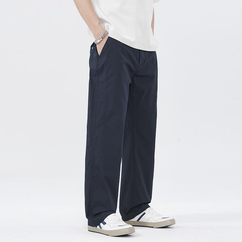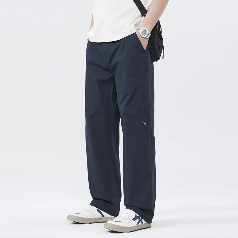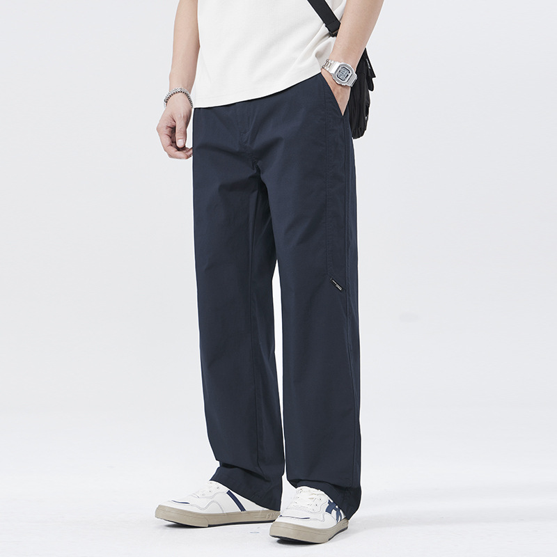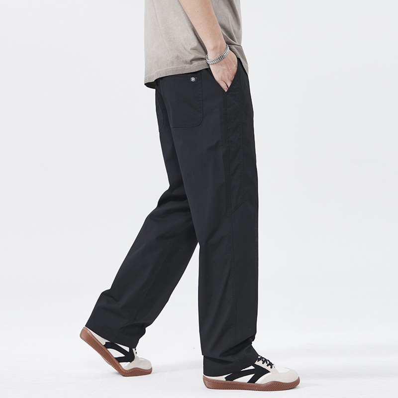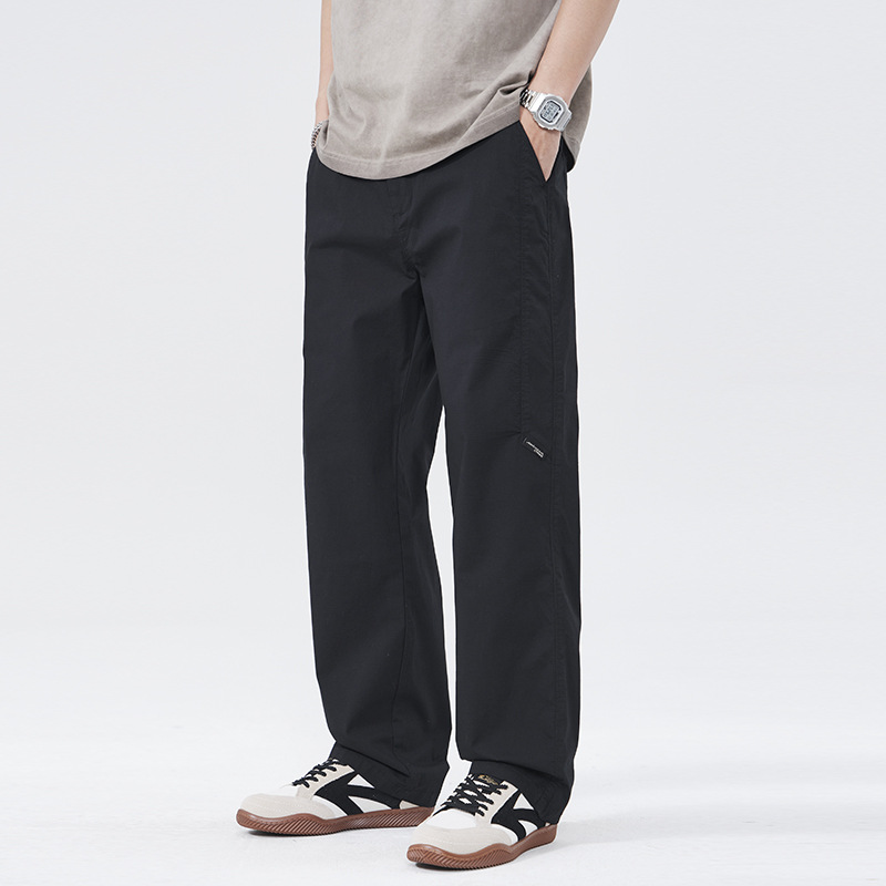 2025年春季黑色高端休闲裤男弹力新款宽松阔腿潮流辑明线直筒裤子