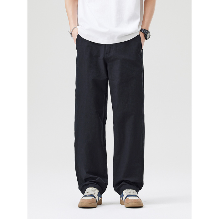 日系直筒纯色休闲裤男士夏季新款慵懒感显瘦宽松薄款工装裤子