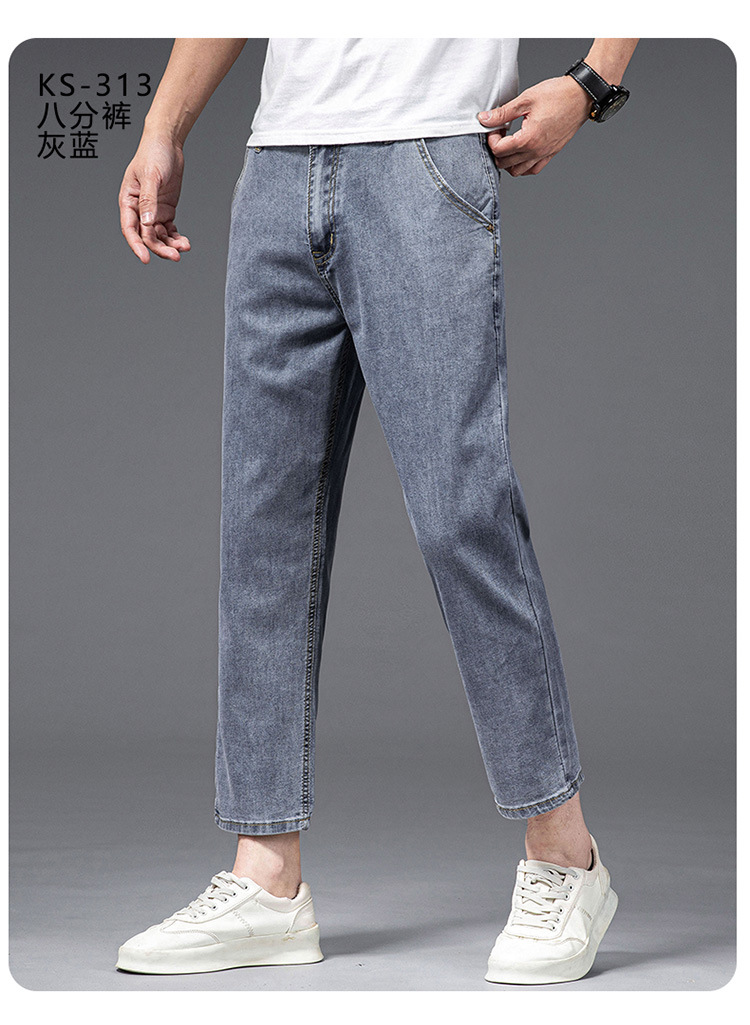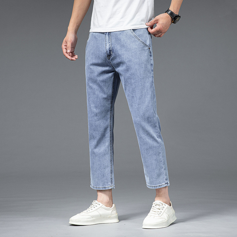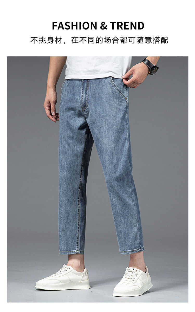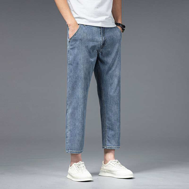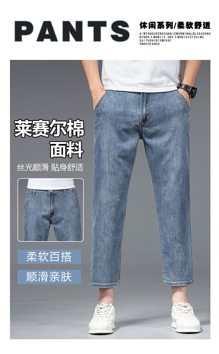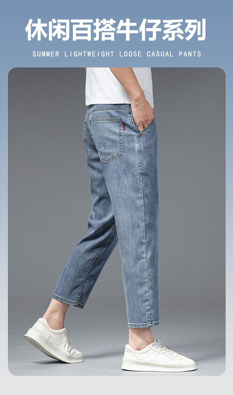 夏季八分牛仔裤男薄款天丝棉宽松直筒高端柔软舒适休闲九分裤
