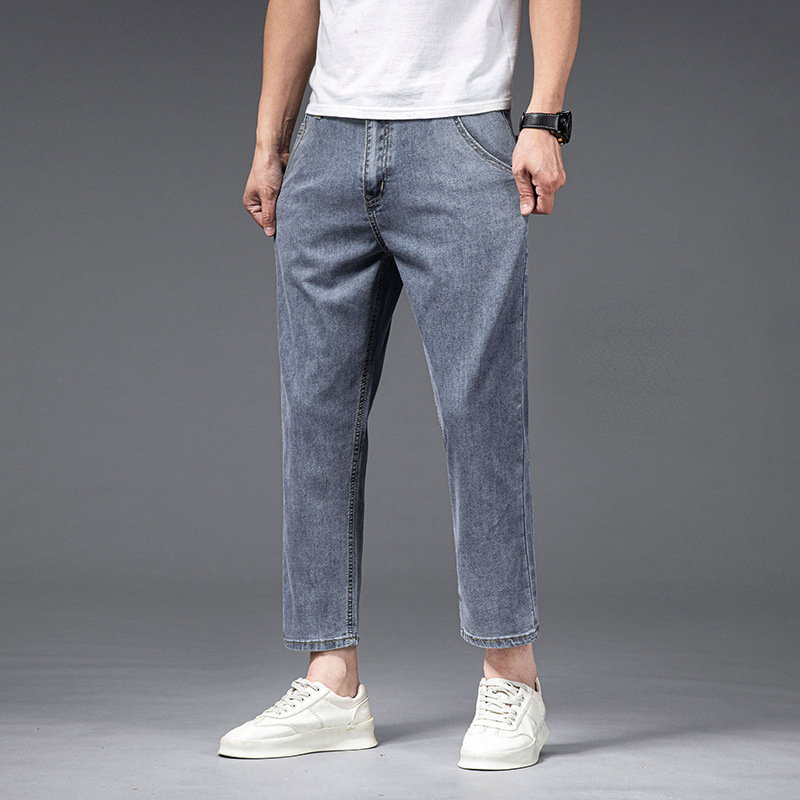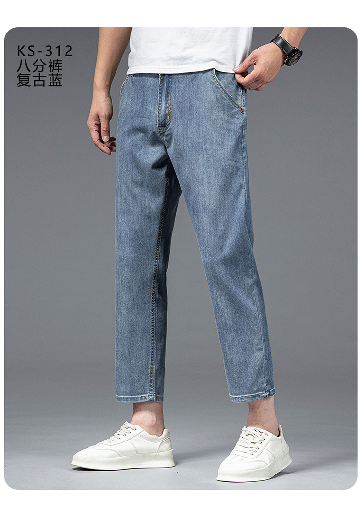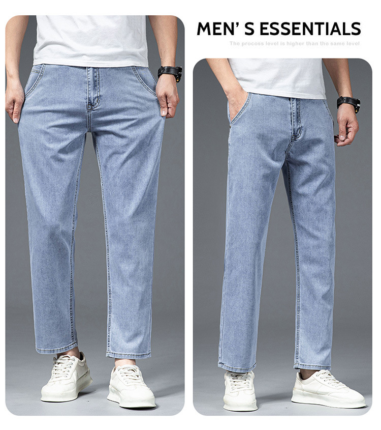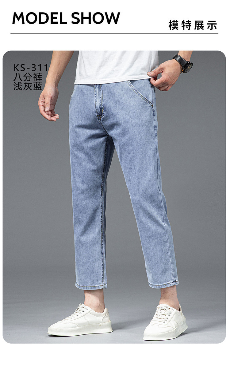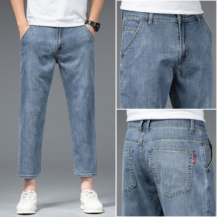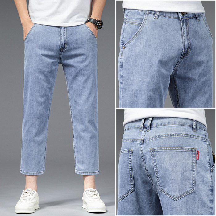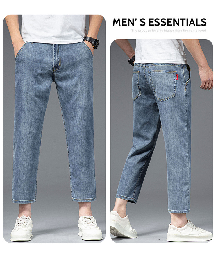 夏季八分牛仔裤男薄款天丝棉宽松直筒高端柔软舒适休闲九分裤