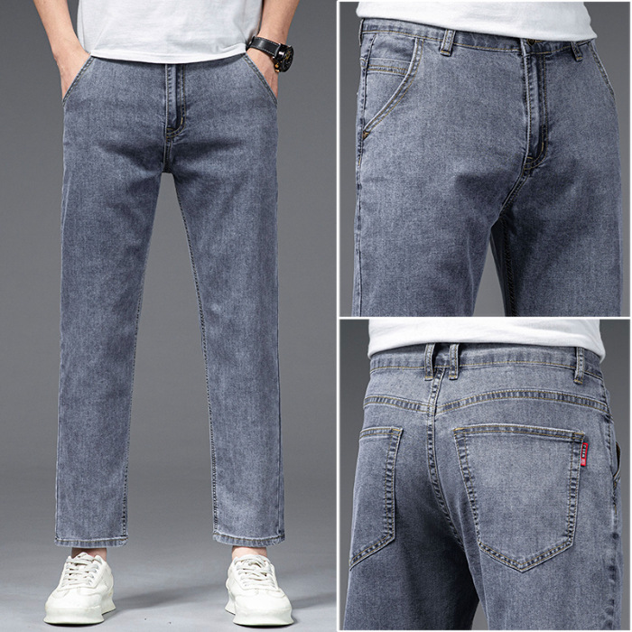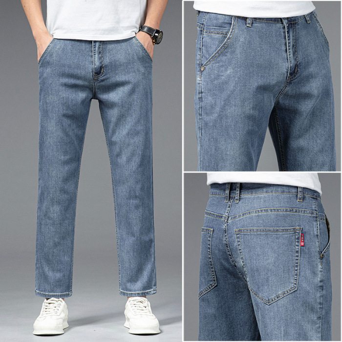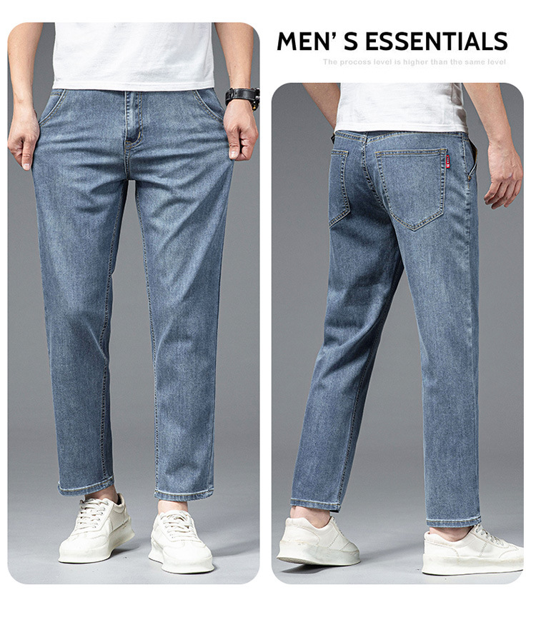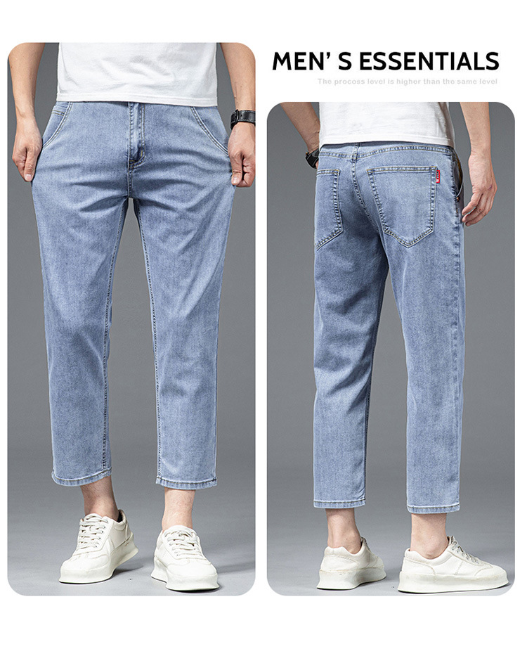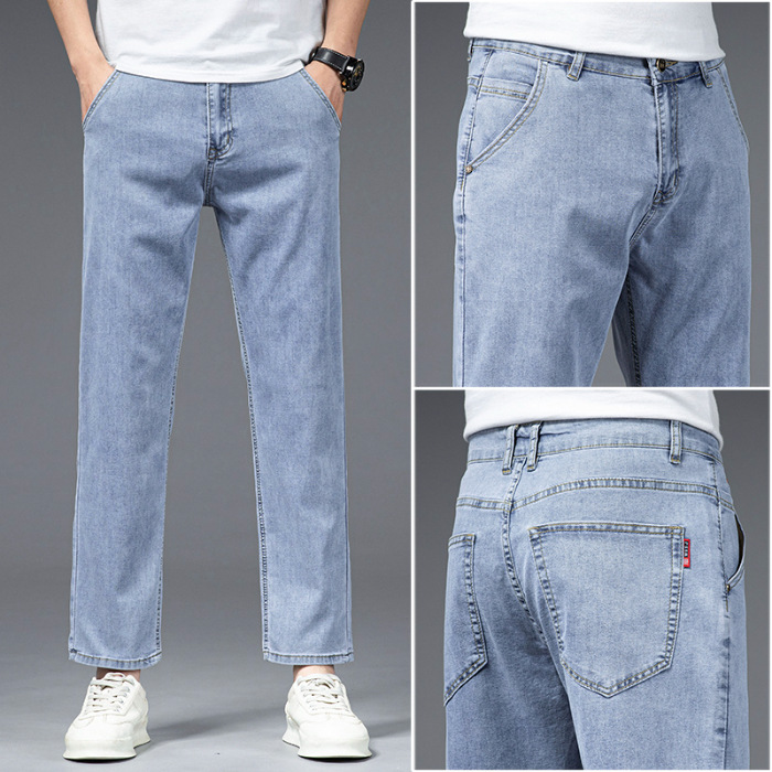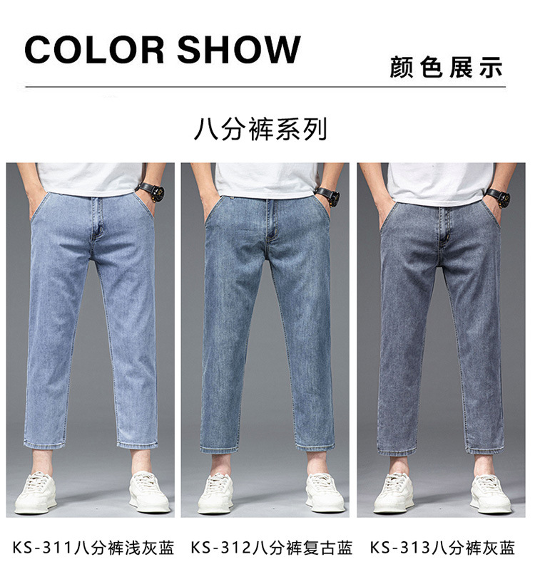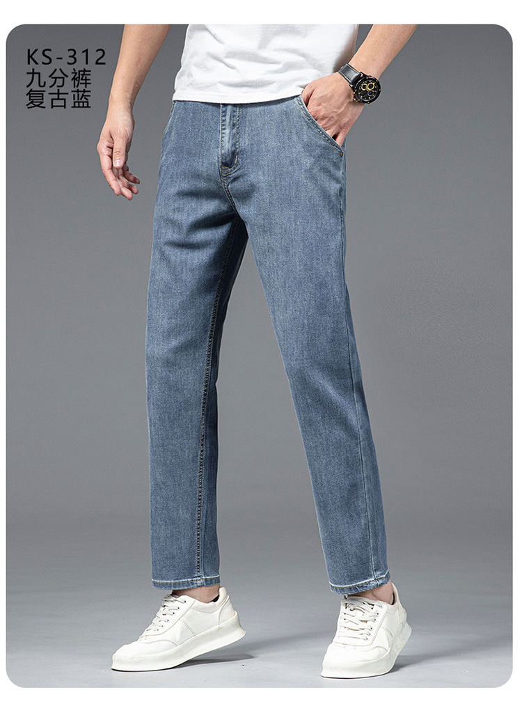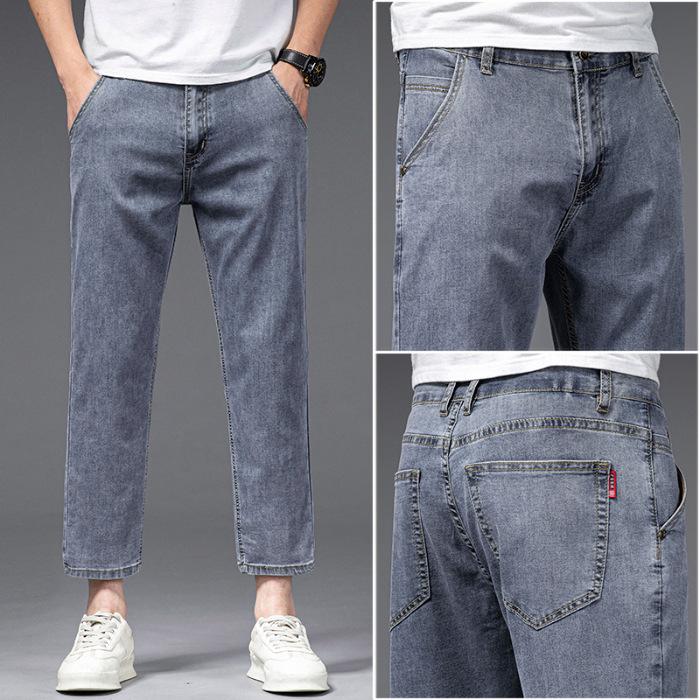 夏季八分牛仔裤男薄款天丝棉宽松直筒高端柔软舒适休闲九分裤