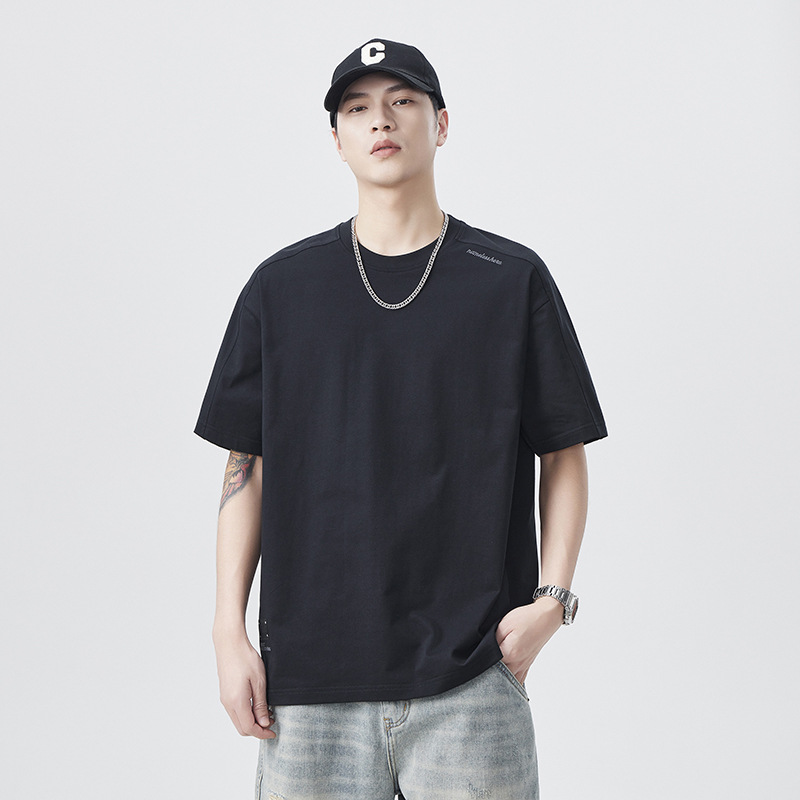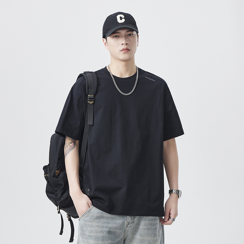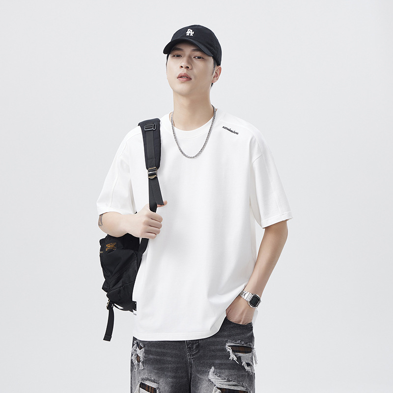 250g美式圆领短袖T恤男春夏季新款潮牌字母刺绣宽松休闲百搭上衣