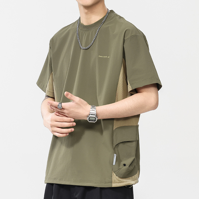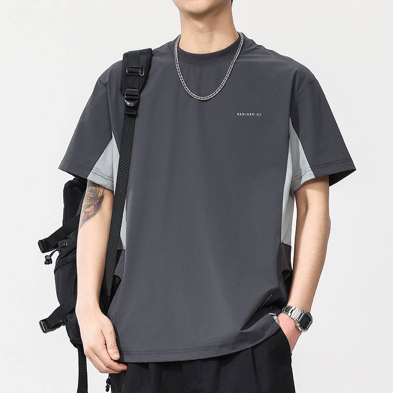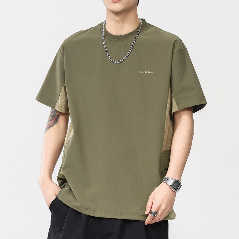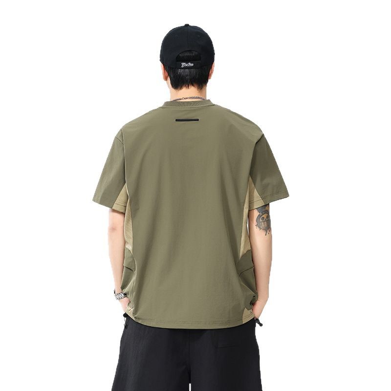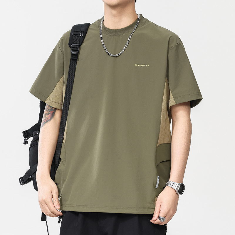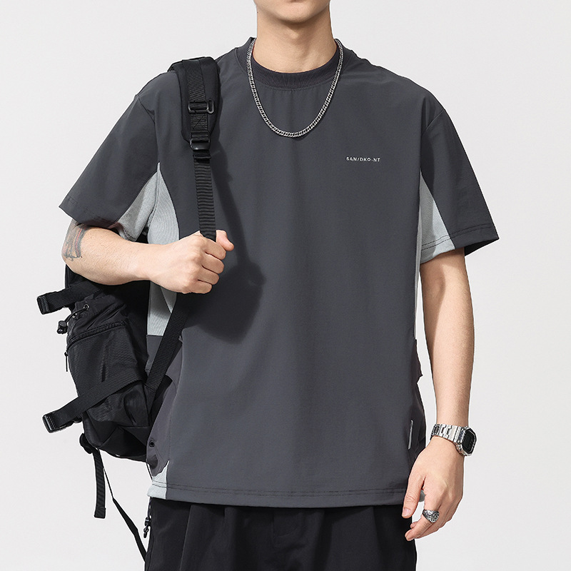 高端美式速干弹力拼接短袖T恤男夏季冰丝凉感运动设计感运动半袖