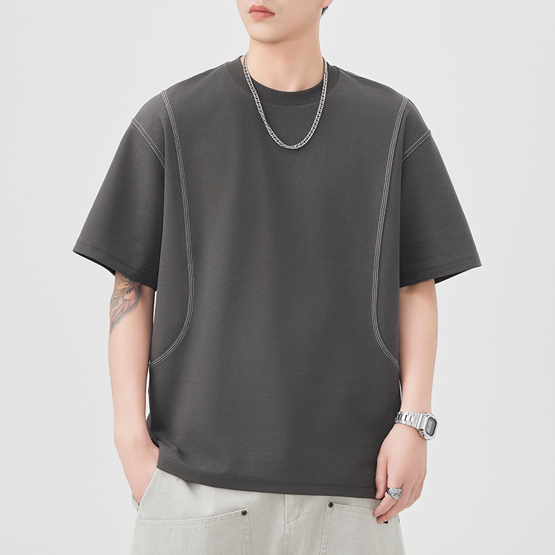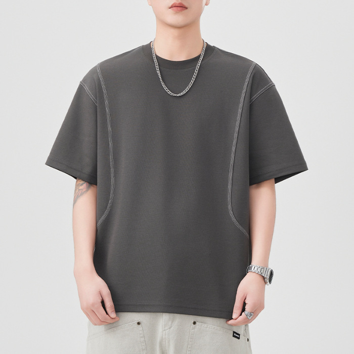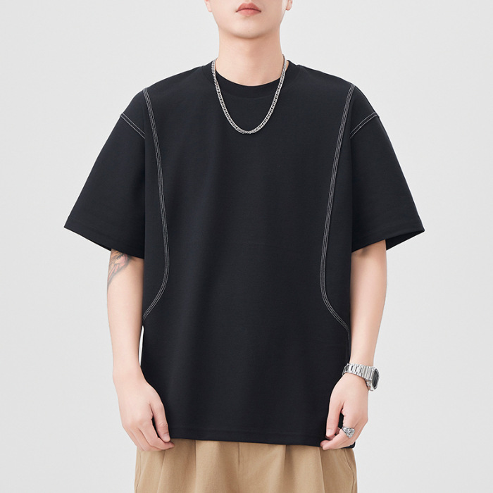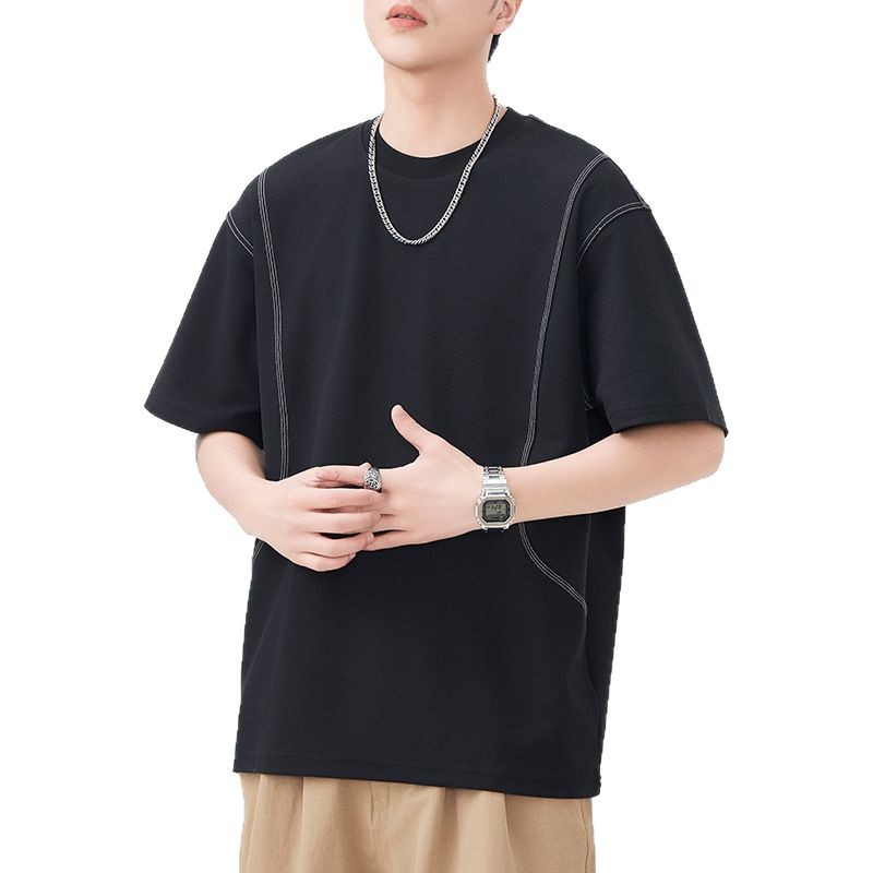 短袖T恤男士2025夏季新款圆领宽松半袖打底上衣潮流拼接撞色体恤