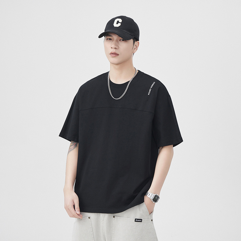 7A抗菌冰氧凉感短袖t恤男2025夏季新款宽松大码刺绣五分袖体恤衫