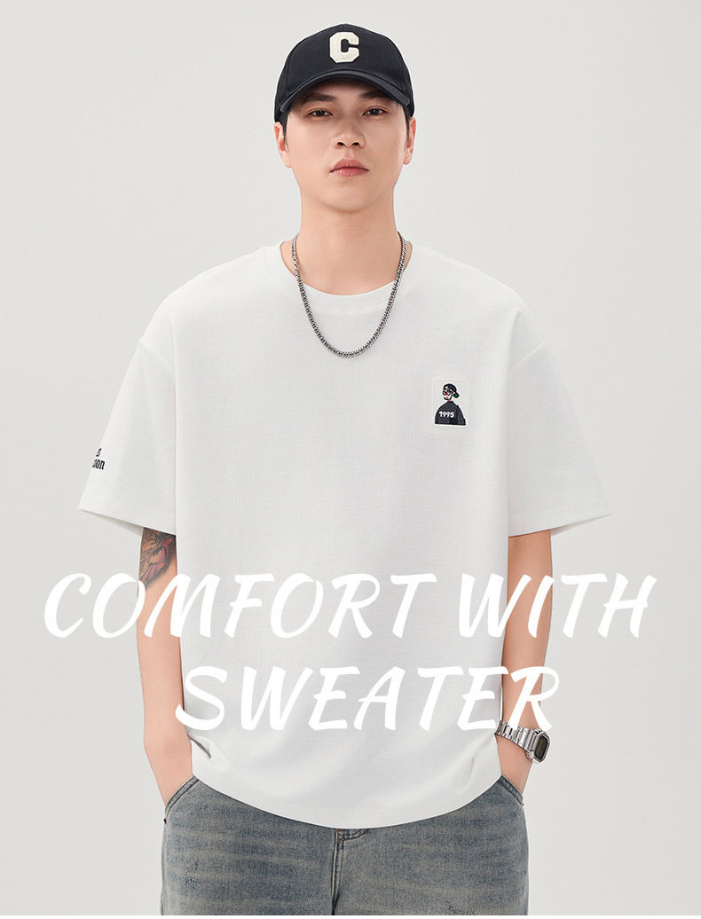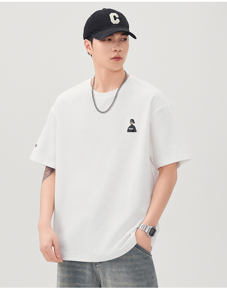 2025夏季新款美式潮牌250G重磅个性刺绣男士短袖体恤宽松圆领上衣