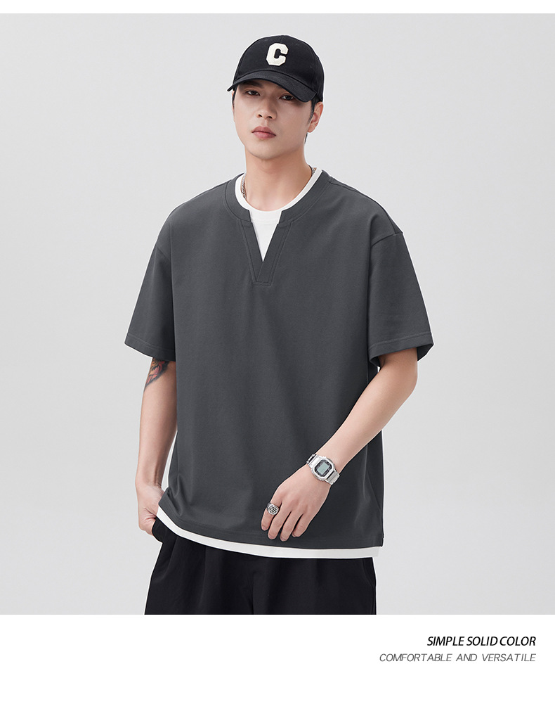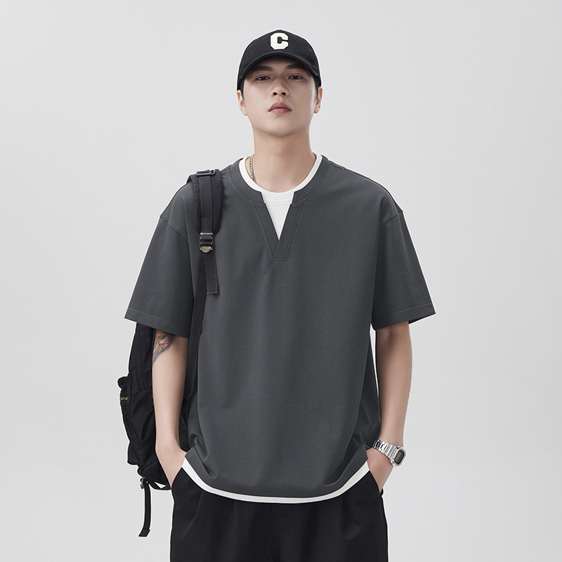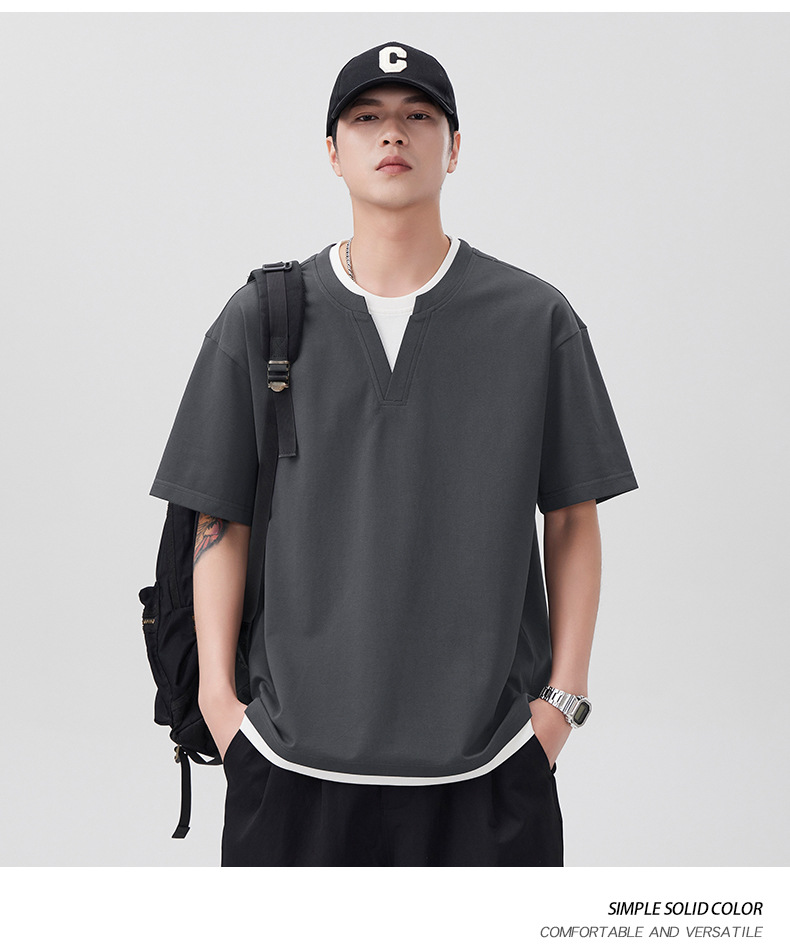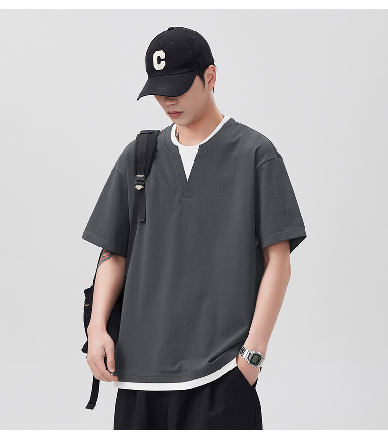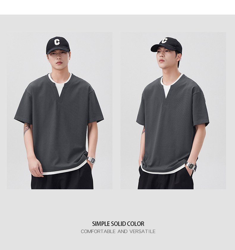 假两件美式复古短袖T恤男夏季2025新款ins潮牌亨利衫男装体恤